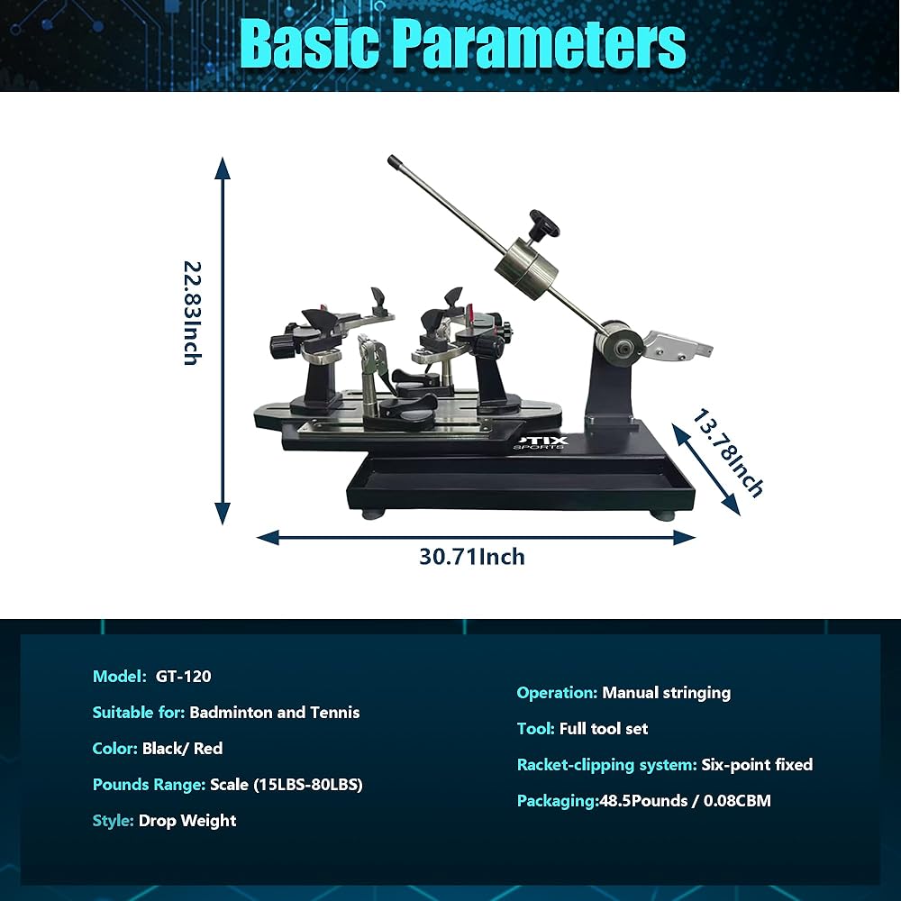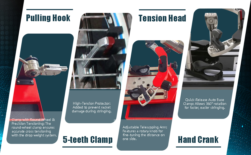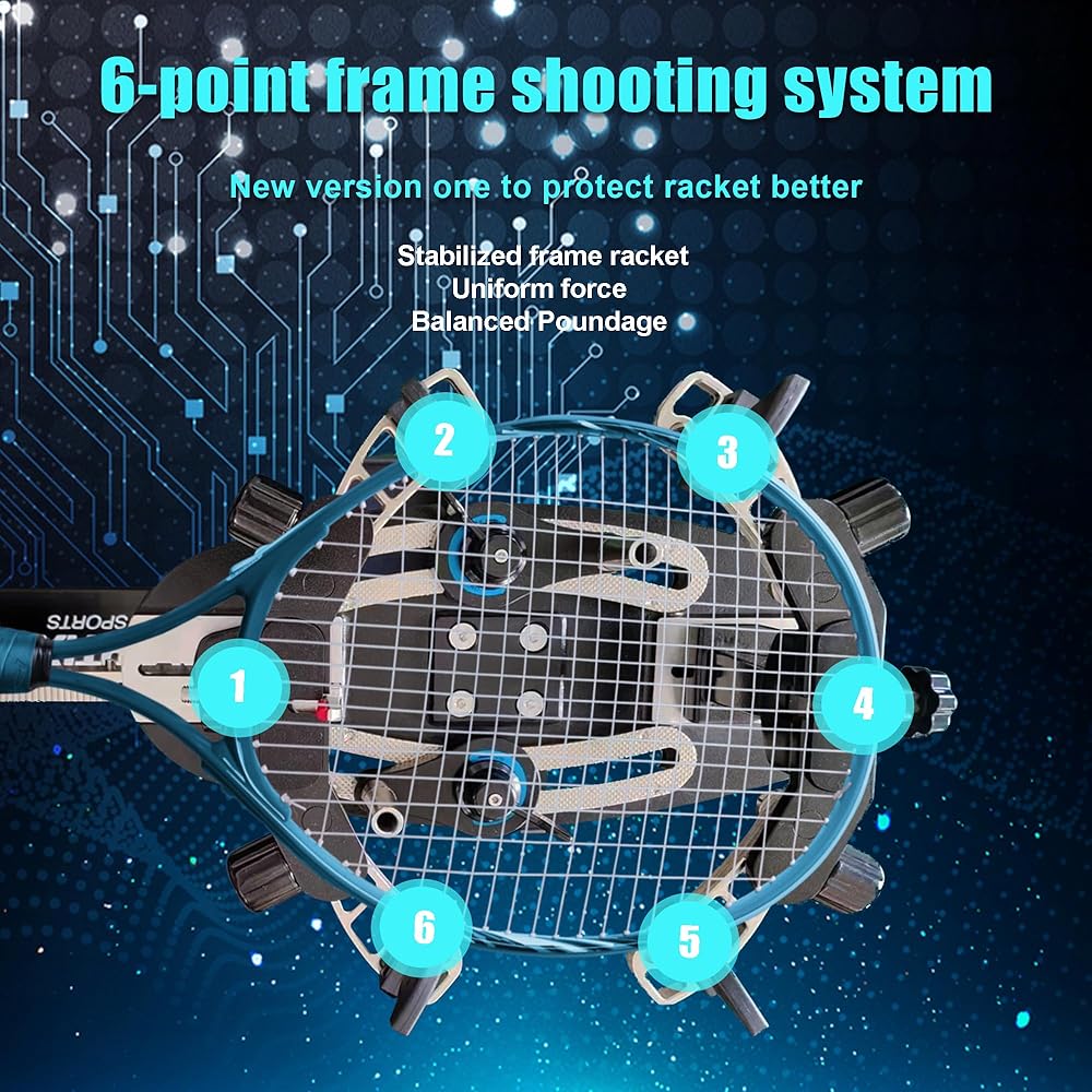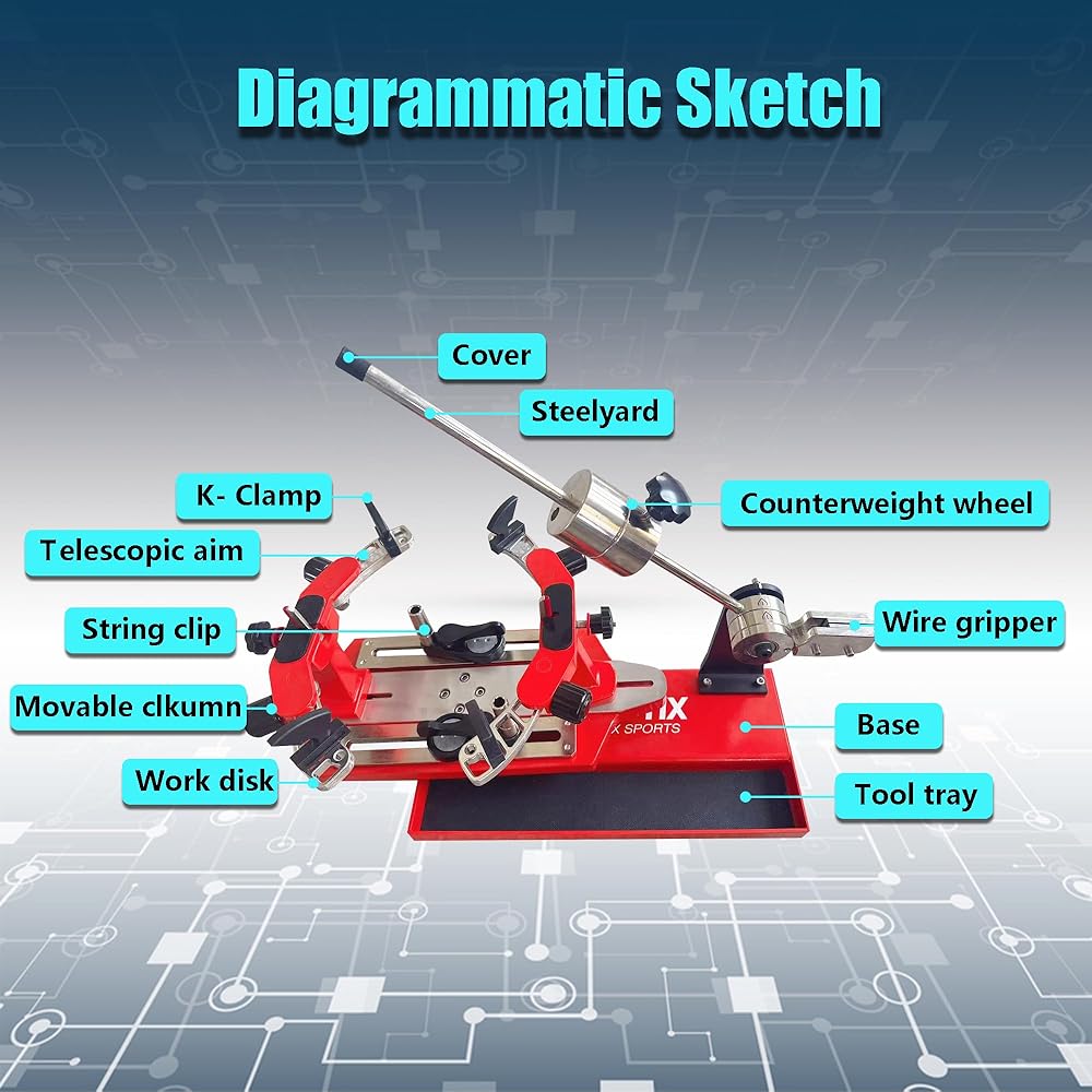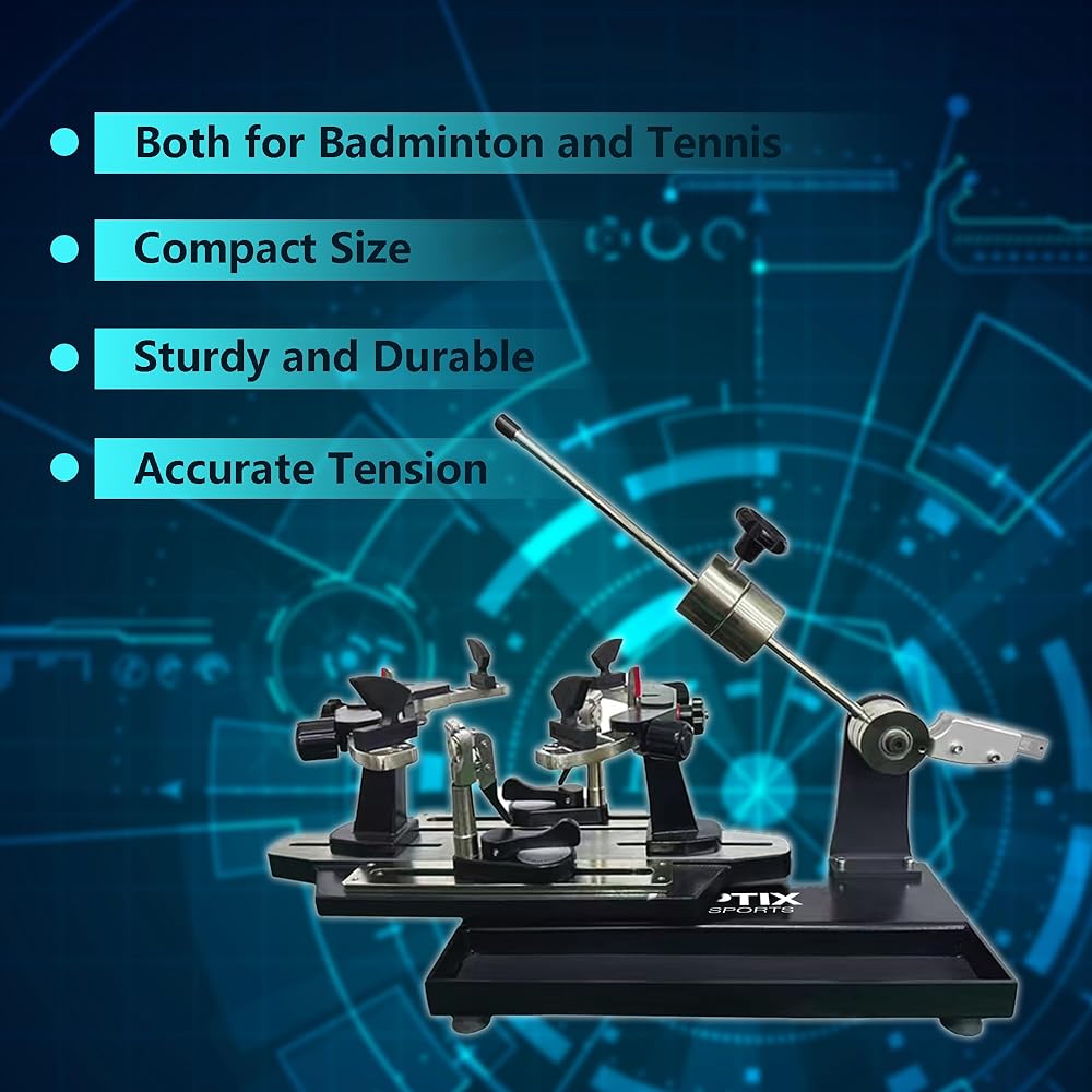 آلة وتر التنس - مع مقابض مضرب على شكل حرف K، مصممة لتقليل الضغط وحماية المضرب عند الوتر.