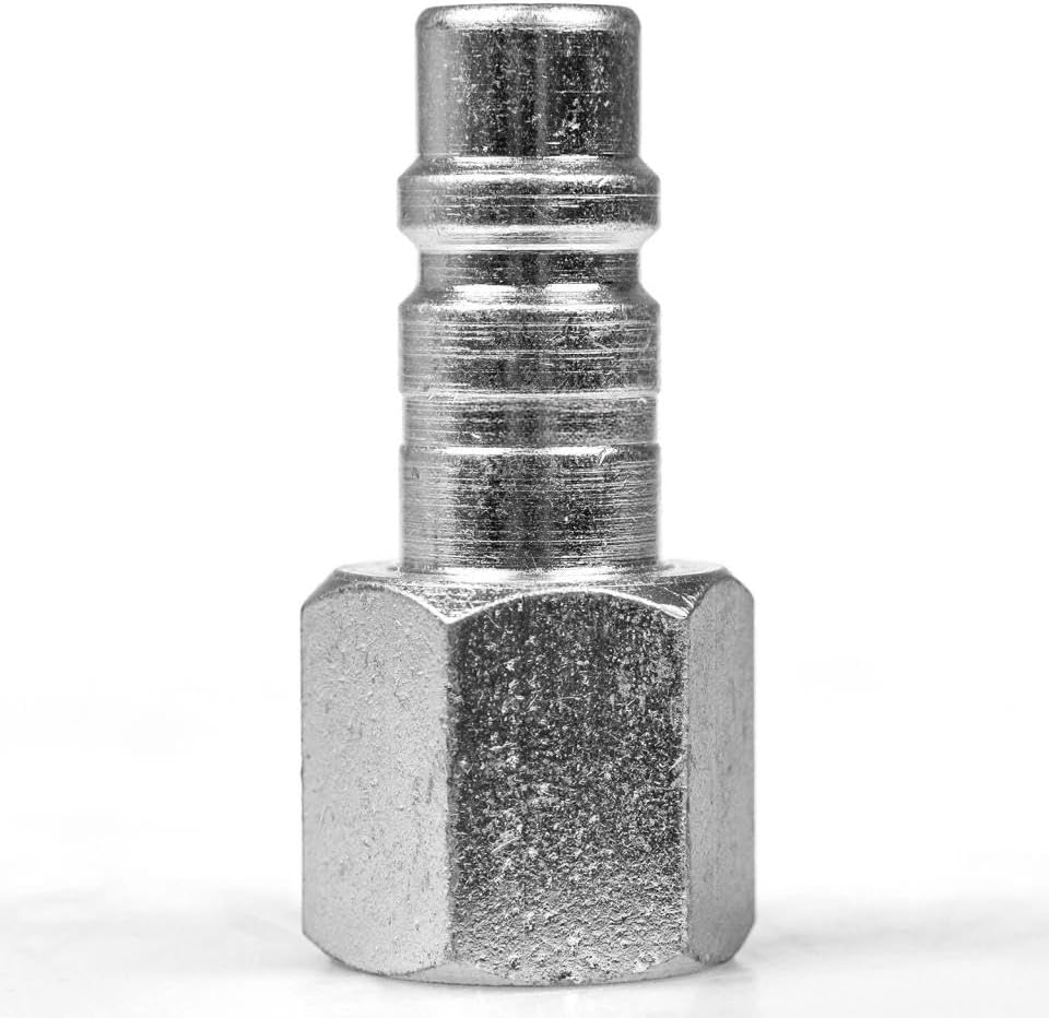• 1858 1/2" NPT Female G-Style Plug Brand new steel 1/2" female NPT G-style air compressor plug for quick release couplers. constructed from steel so it will last longer than the cheaper plugs made from brass. This plug has 1/2" female NPT threads. Specifications: 1/2" Female NPT Threads 1/2" Body 1/2" Basic Flow Size Style: G-Style Air Flow: 99 SCFM Max Inlet Pressure: 300 PSI Material: Steel Overall Diameter: 1.13" Length: 2.39" This listing is for a single plug.
