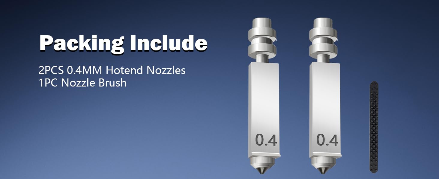 ملحقات طابعة ثلاثية الأبعاد عالية الجودة: تتضمن قطعتين من أجزاء مجموعة Kobra X hotend المجمعة: فوهة عالية الدقة، وأنبوب الحلق، وكتلة تبديد مطورة لأنبوب الحلق لتبديد الحرارة بشكل أسرع، وفرشاة فوهة واحدة إضافية لطباعة أكثر سلاسة ونماذج مطبوعة ثلاثية الأبعاد أفضل.