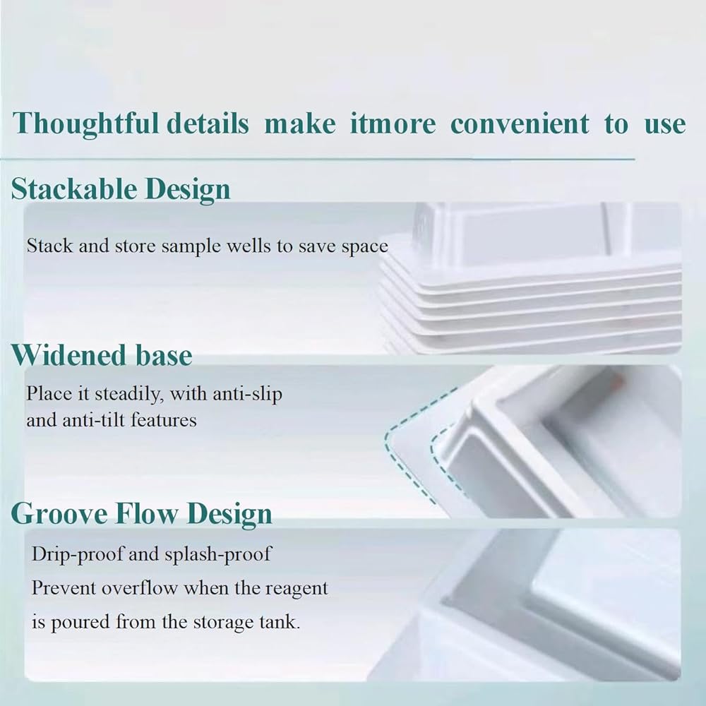 • 【Individually Packaged】100CS,100ml Reagent Reservoir.Each basin is individually packaged and gamma radiation sterile, making them ideal for use in laboratory