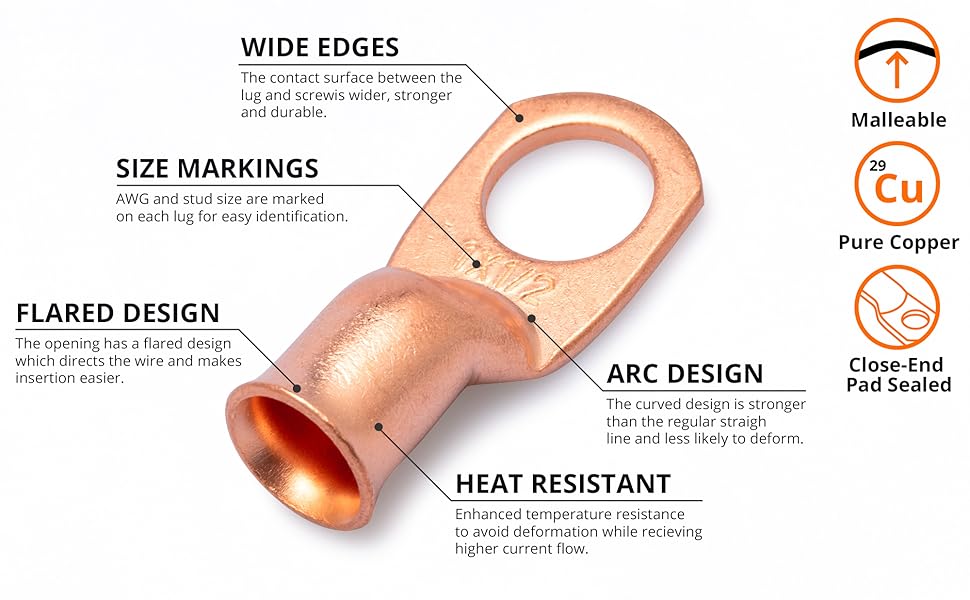 تجعيدات قوية للغاية وأقصى تدفق للتيار - مصنوعة من النحاس الملدن السميك، تضمن هذه الموصلات الطرفية للبطارية شديدة التحمل تجعيدات قوية للغاية وزيادة تدفق التيار.