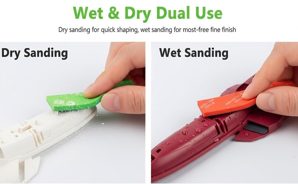【استخدام مزدوج رطب وجاف】يعمل ورق الصنفرة الإسفنجي هذا بسلاسة لكل من الصنفرة الرطبة والجافة. تعمل الصنفرة الرطبة على تقليل الغبار وتحقيق لمسة نهائية أكثر دقة، بينما توفر الصنفرة الجافة تشكيلًا سريعًا وفعالاً. سواء كنت تقوم بتنعيم أجزاء الراتنج أو تنقية المكونات البلاستيكية، فإنها تتكيف مع احتياجات مشروعك بسهولة.