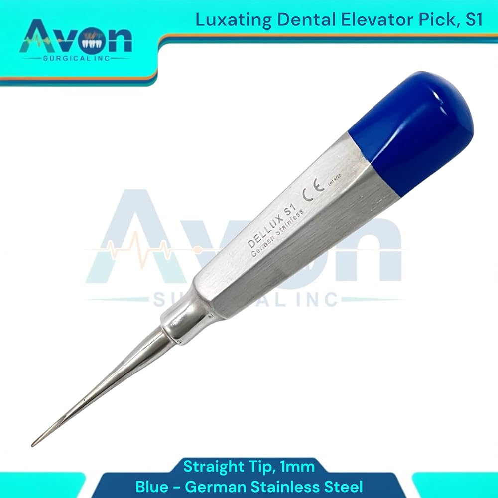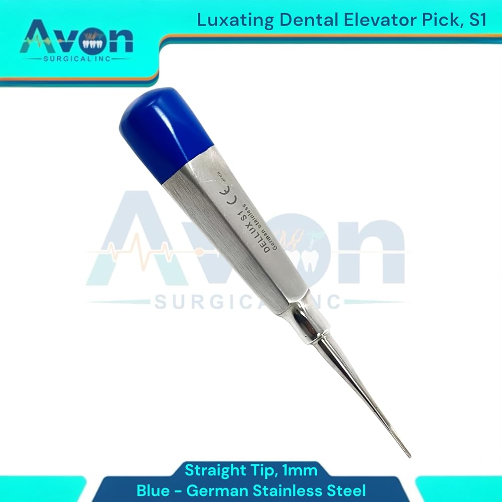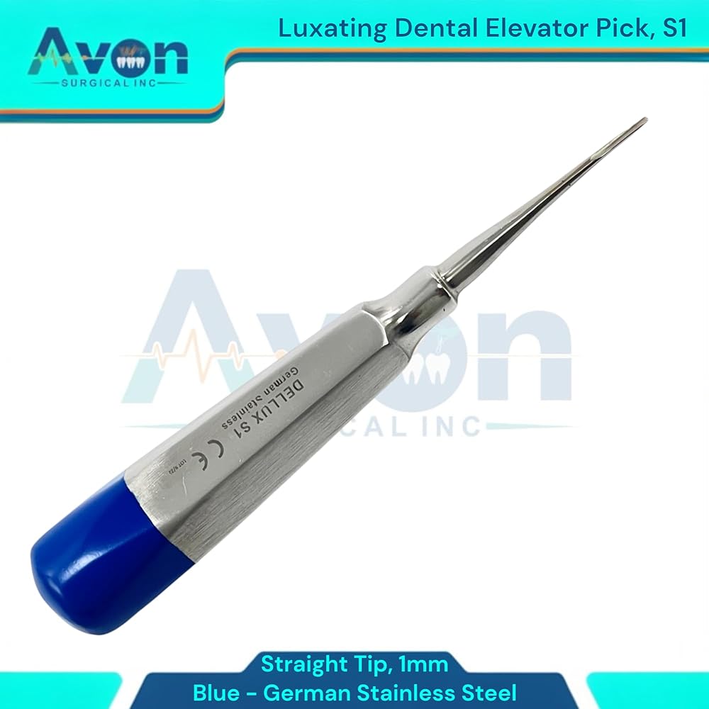Includes: 1 Each - Luxating Root Dental Elevator Pick, 1mm Straight Tip, Hollow Handle with Blue Color Ends - Autoclave-Safe German Stainless Steel. Precision Luxation: 1mm Straight Tip designed for precise and controlled tooth luxation during dental extractions. Hollow Handle Design: Lightweight, ergonomic hollow handle provides excellent tactile feedback and reduces hand fatigue during procedures. Distinctive Blue Color Ends: Easily identifiable blue color ends for quick recognition and organization within your dental instrument set. German Stainless Steel: Constructed from durable, corrosion-resistant German stainless steel for long-lasting performance and reliability.
