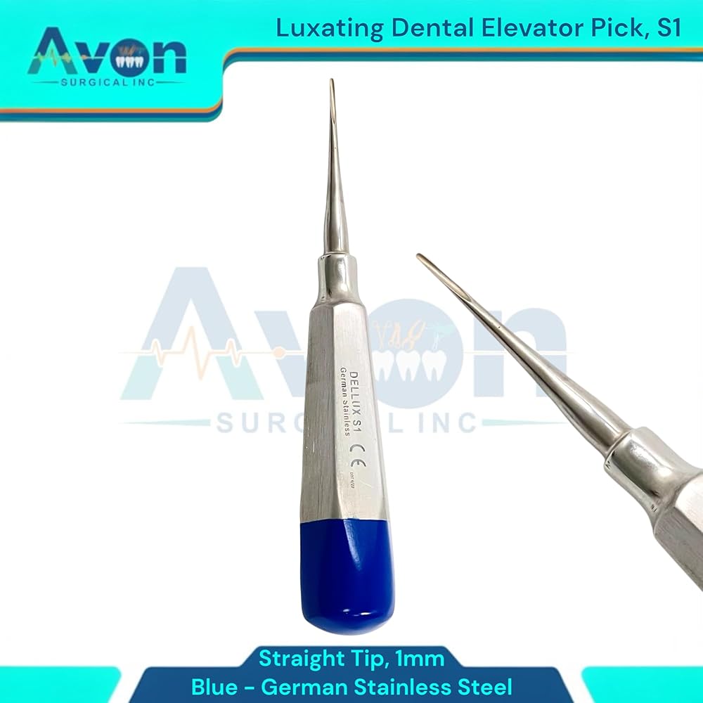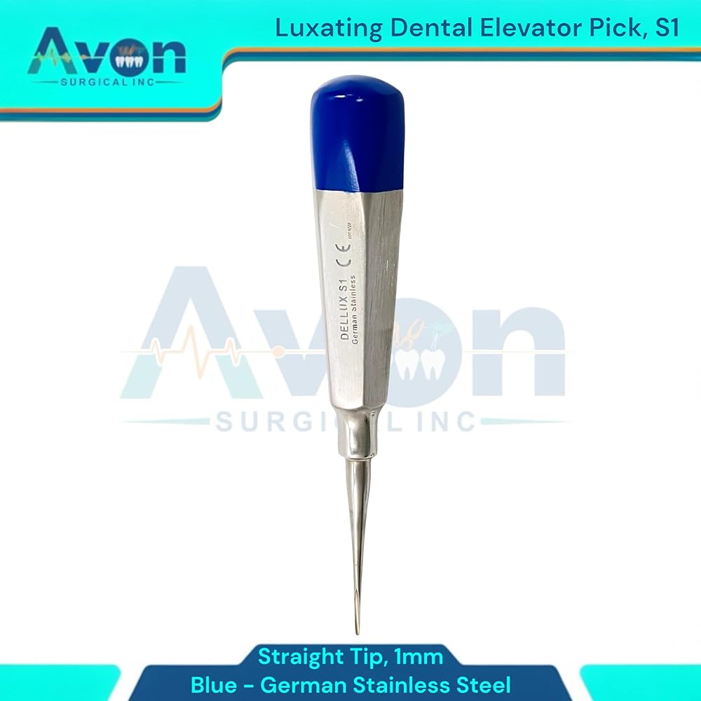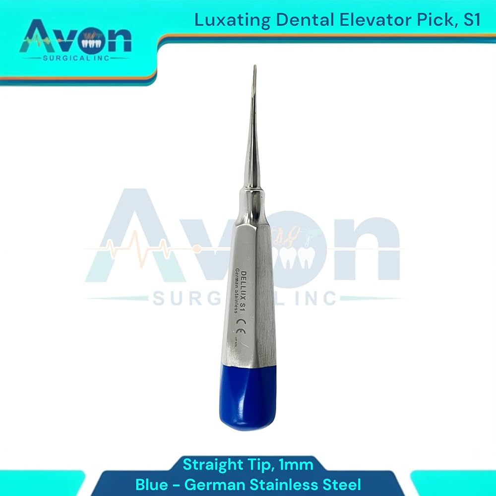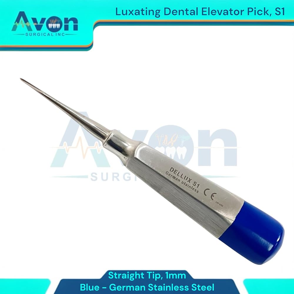 Includes: 1 Each - Luxating Root Dental Elevator Pick, 1mm Straight Tip, Hollow Handle with Blue Color Ends - Autoclave-Safe German Stainless Steel. Precision Luxation: 1mm Straight Tip designed for precise and controlled tooth luxation during dental extractions. Hollow Handle Design: Lightweight, ergonomic hollow handle provides excellent tactile feedback and reduces hand fatigue during procedures. Distinctive Blue Color Ends: Easily identifiable blue color ends for quick recognition and organization within your dental instrument set. German Stainless Steel: Constructed from durable, corrosion-resistant German stainless steel for long-lasting performance and reliability.