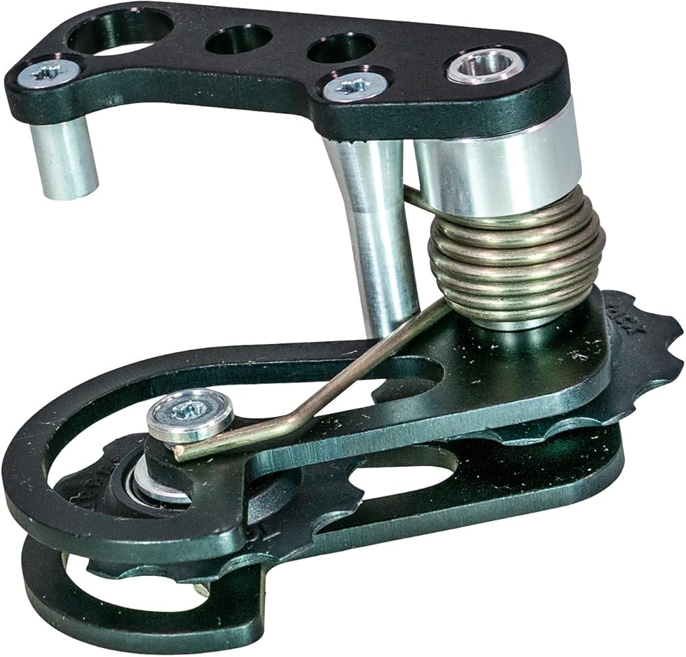 Introducing the Rohloff XC/SS Chain Tensioner with 10mm Offset - the ultimate solution for precise chain management on your modern bicycle. Engineered with innovation and durability in mind, this spring-loaded, twin-pulley tensioner is specifically designed to optimize performance on vertical-dropout frames when paired with the Rohloff Speedhub. Materials & Construction: Crafted from , lightweight materials, the Rohloff XC/SS Chain Tensioner weighs only 115 grams, ensuring minimal impact on your bike's efficiency. Its robust black finish offers excellent corrosion resistance and durability for demanding cycling conditions. Performance & Engineering: Featuring a spring-loaded twin-pulley system, this tensioner maintains consistent chain tension, reducing chain slack, and preventing derailments. Its longer arm design on the XC model simplifies wheel removal and installation, making trail maintenance and adjustments quick and straightforward. The shorter arm version tailored for downhill (DH) riding brings the upper pulley closer to the hub sprocket, enhancing chain retention for aggressive downhill applications. Components & Technology: Designed to work seamlessly with Rohloff's hub-mounted DH chain guide, this tensioner ensures optimal chain stability and smooth operation. The twin-pulley setup reduces wear and friction, contributing to a more efficient drivetrain and increased component lifespan. Style & Use Case: With its sleek black aesthetic, the Rohloff Tensioner complements a variety of bike styles-from rugged mountain bikes to custom singlespeeds. Its versatile design caters to cyclists looking for reliable chain tensioning solutions in both urban and off-road environments. Innovative Features & Differentiators: Unique to its class, this tensioner offers adjustable compatibility with different drivetrain setups, including singlespeed configurations and Rohloff Speedhub-equipped bikes. Its easy installation, combined with its precision engineering,