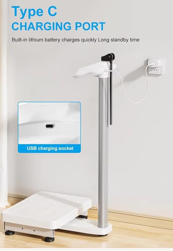 الدقة الرقمية: مقياس رقمي اقتصادي مع قياسات دقيقة للوزن وقضيب قياس الارتفاع المتكامل لقياسات الجسم الشاملة. نطاق وزن مقياس الارتفاع: 10-440 رطلاً؛ دقة الوزن: ±0.2 رطل، نطاق قياس الارتفاع: 27.6 بوصة - 78 بوصة، دقة الارتفاع: ±0.2 بوصة. منفذ شحن من النوع c.