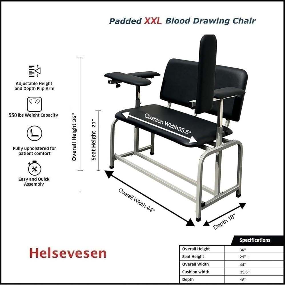 Helsevesen مقعد عريض للغاية لسحب الدم XXL كرسي طبي لسحب الدم مع مقعد مبطن عريض جدًا، - كرسي سحب الدم Mommy & Me مع مسند ذراع قابل للتعديل، 2024.11