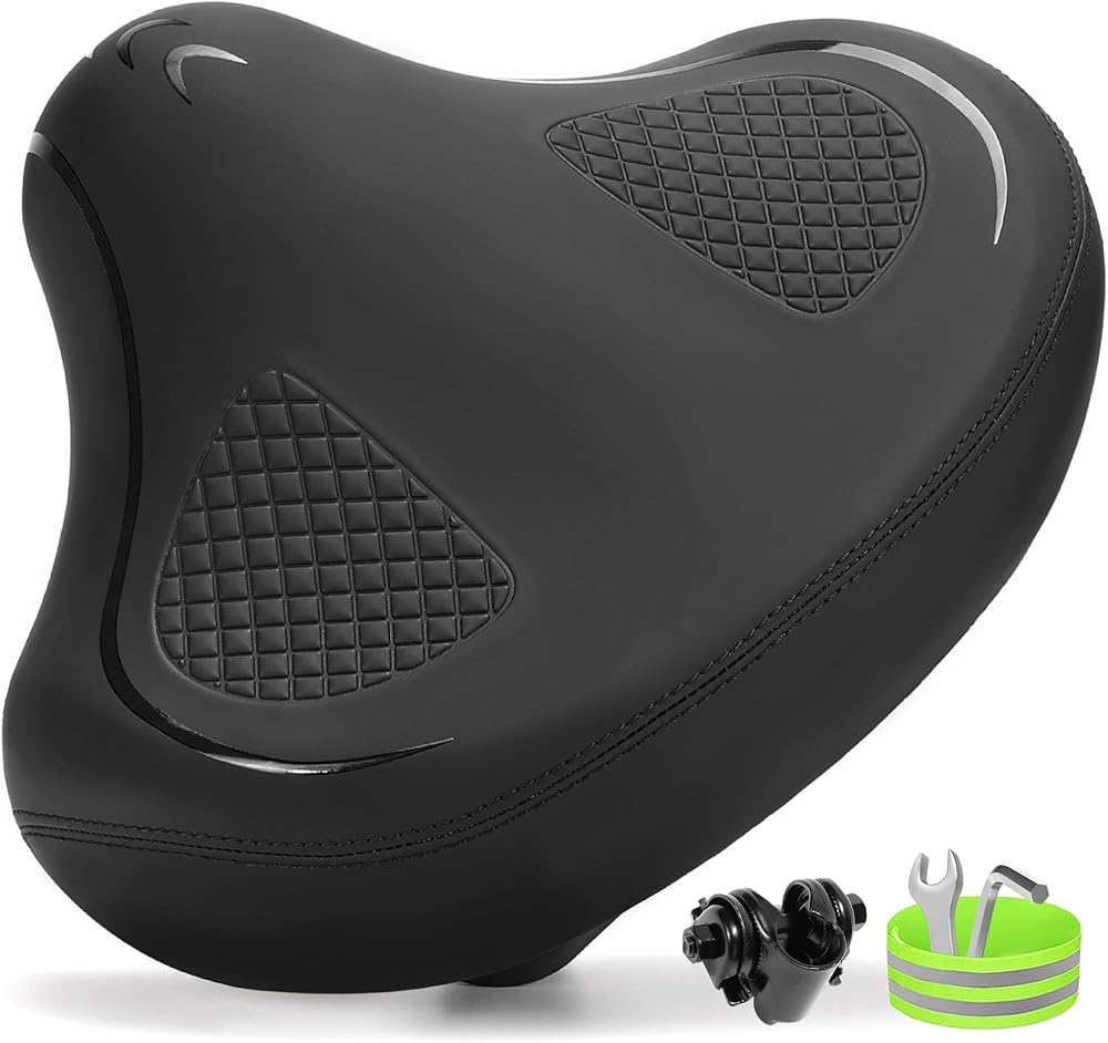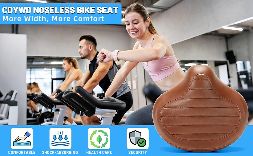 راحة أوسع وممتازة: حجم المقعد 8.2 * 10.2 * 4.5 بوصة، إسفنج عالي المرونة بسمك 2.5 بوصة يوفر دعمًا ناعمًا، والذي يمكن أن يلبي تمامًا احتياجات الراحة الخاصة بك لمقعد الدراجة الواسع