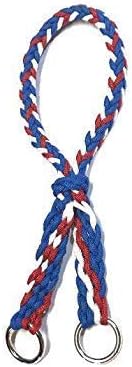 This is an indian war bridle braided out of 8 strands of high quality 550 paracord. The colors of this one are Red White & Blue. You slide the keeper up to the chin to keep it in place, but leave room so that it is not too tight. This piece, like any other new equipment, should be tried out in a safe place to see how your horse responds to it. If your horse is well broke it can be a fun item to get in better communication with your horse.