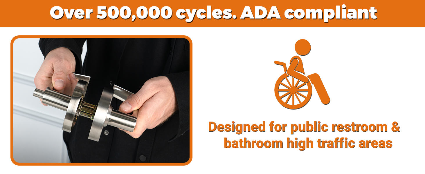 قفل عالمي لمخرج الطوارئ - تصميم هيكلي حاصل على براءة اختراع: تم تصميمه مع وضع الخروج في حالات الطوارئ الحرجة في الاعتبار. على عكس أذرع ADA التقليدية التي تتطلب التفكيك لتبديل التعامل (التأرجح الأيسر/الأيمن)، يتم تركيب القفل الخاص بنا بشكل بديهي على أي اتجاه تأرجح للباب على الفور - لا توجد أجزاء للتبديل. وهذا يبسط الطلب والتركيب مع الحفاظ على السلامة بشكل لا هوادة فيه