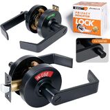 المواصفات الأساسية: ما يهمك: قفل مقبض الباب الشاغر/المشغول هذا متوافق مع معظم الأبواب القياسية بسمك 1-3/8 بوصة (35 مم) إلى 2 بوصة (50 مم). المزلاج القابل للتعديل يناسب 2-3/8 بوصة (60 مم) أو 2-3/4 بوصة (70 مم). تتميز بوردة مقاس 90 مم (3.54 بوصة)، وتم تصميم آليتها الفريدة لتحمل أكثر من 500000 دورة فتح وإغلاق، وتلبية معايير الدرجة الثانية من ANSI