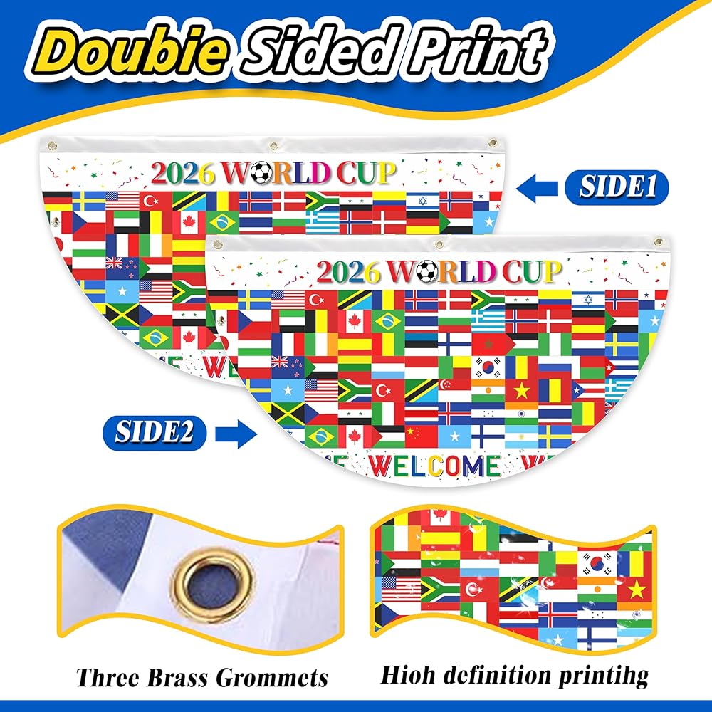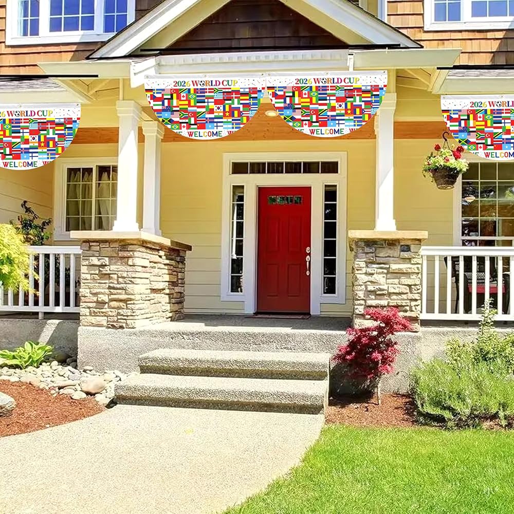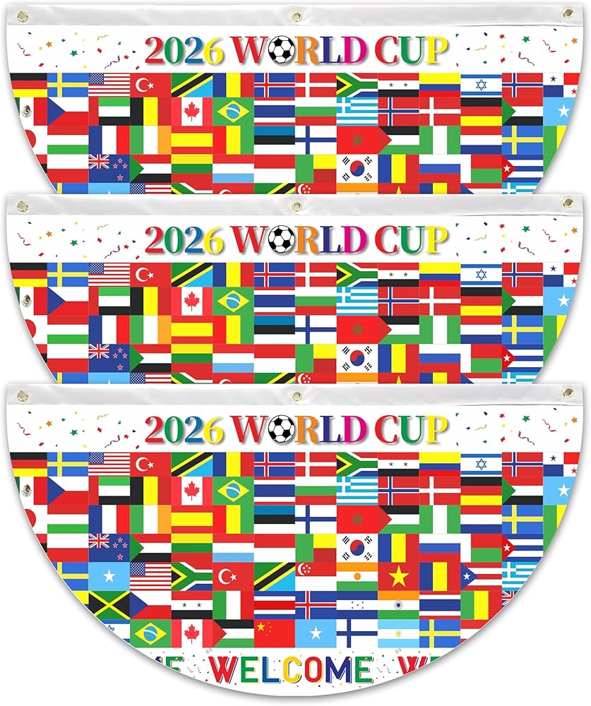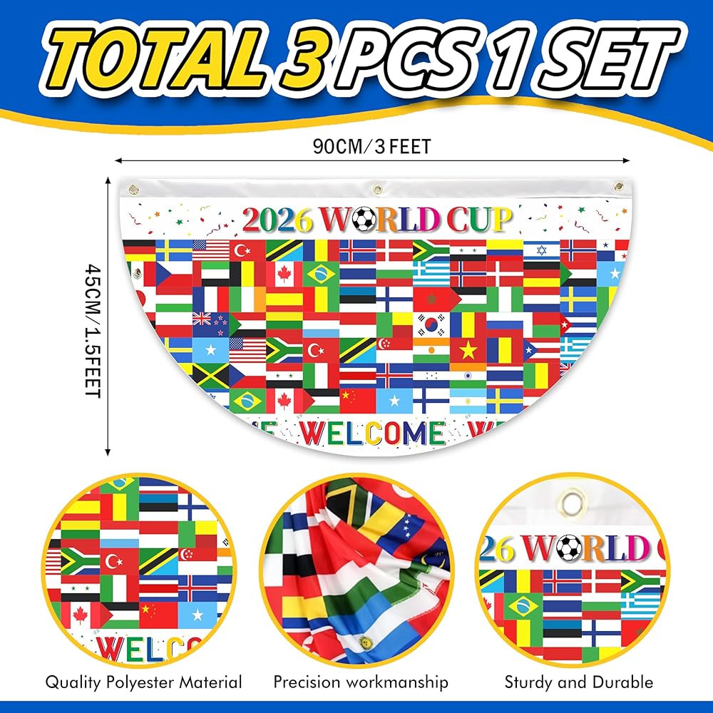 3-Piece World Flags Banners 1.5x3 ft - International Fan-Shaped Bunting for Soccer Parties, Sports Events & Grand Opening Decorations