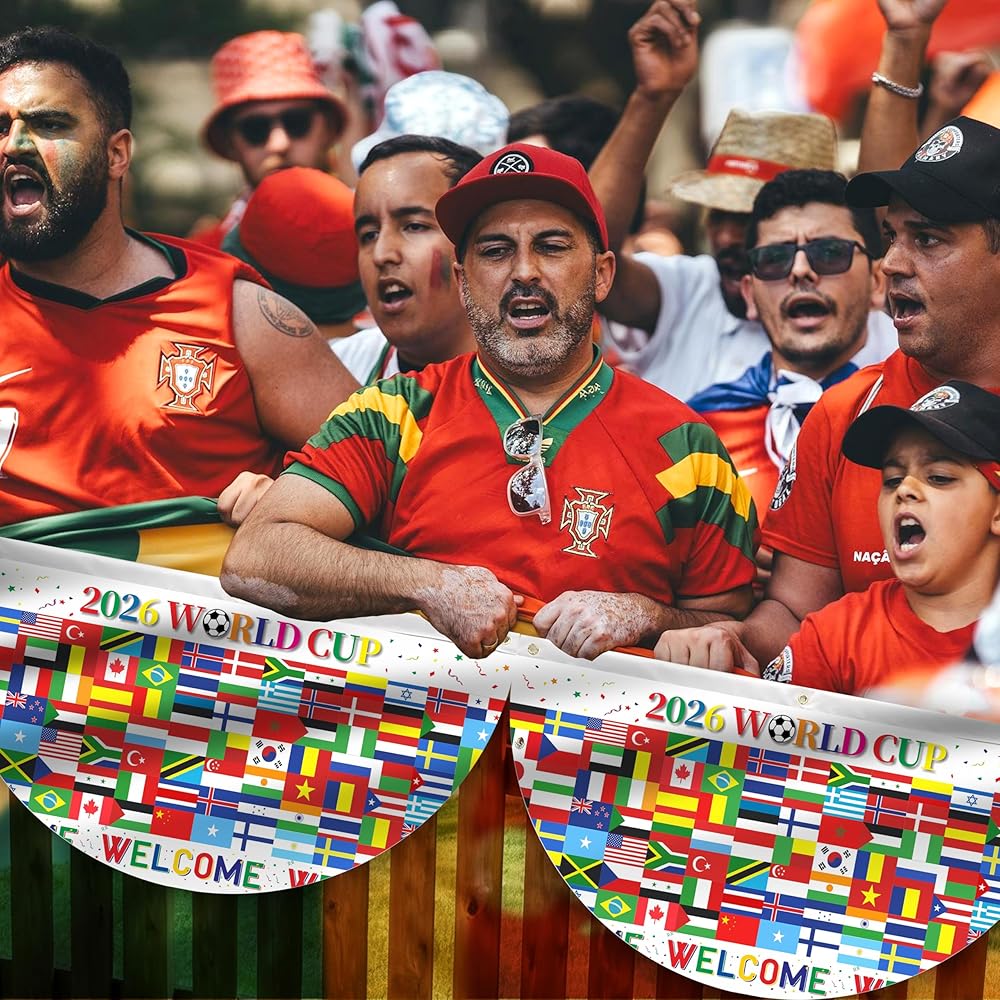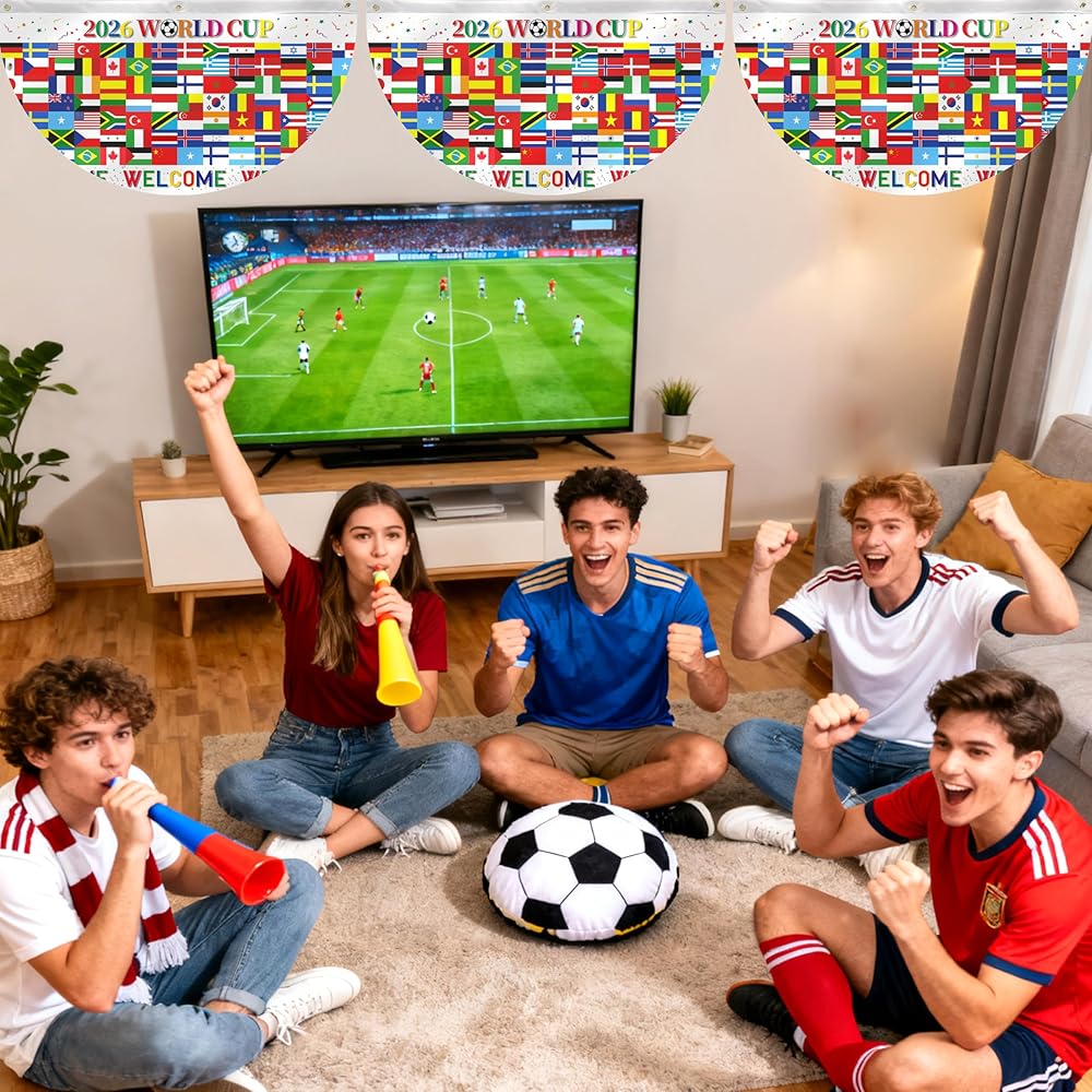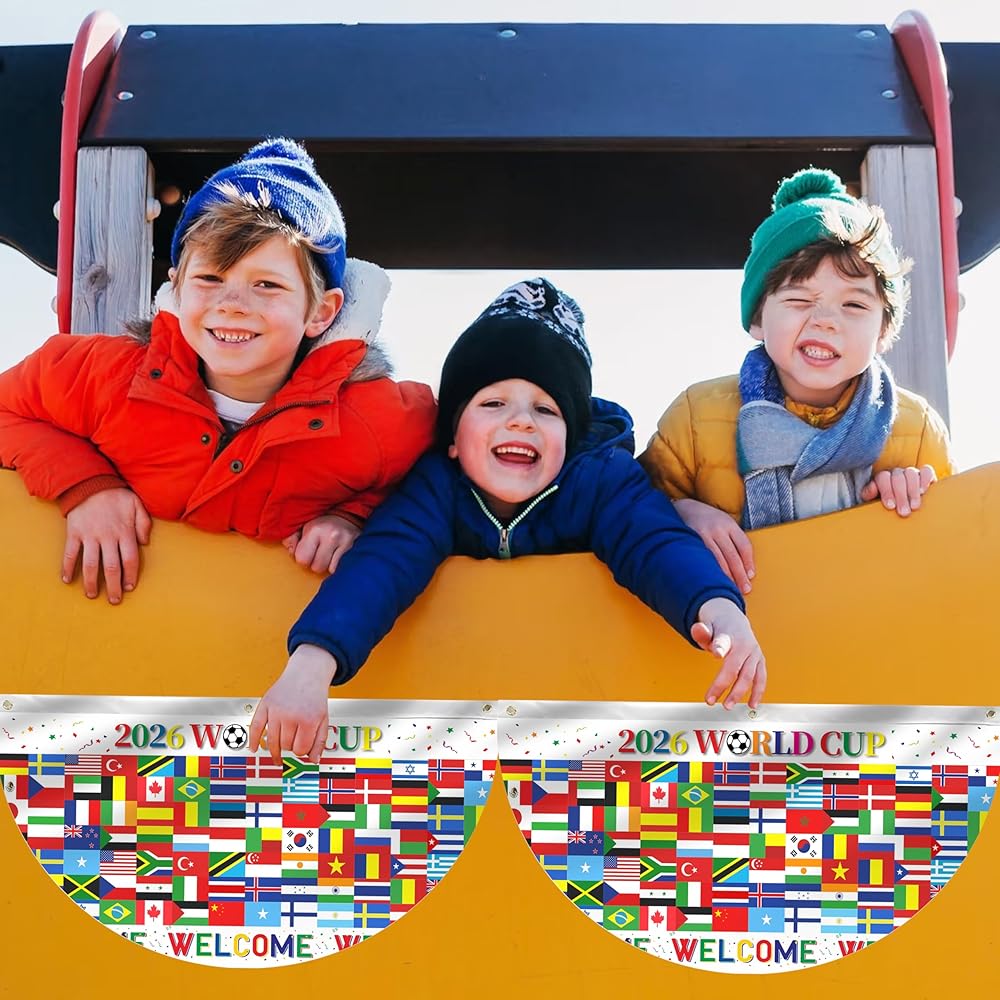3-Piece World Flags Banners 1.5x3 ft - International Fan-Shaped Bunting for Soccer Parties, Sports Events & Grand Opening Decorations