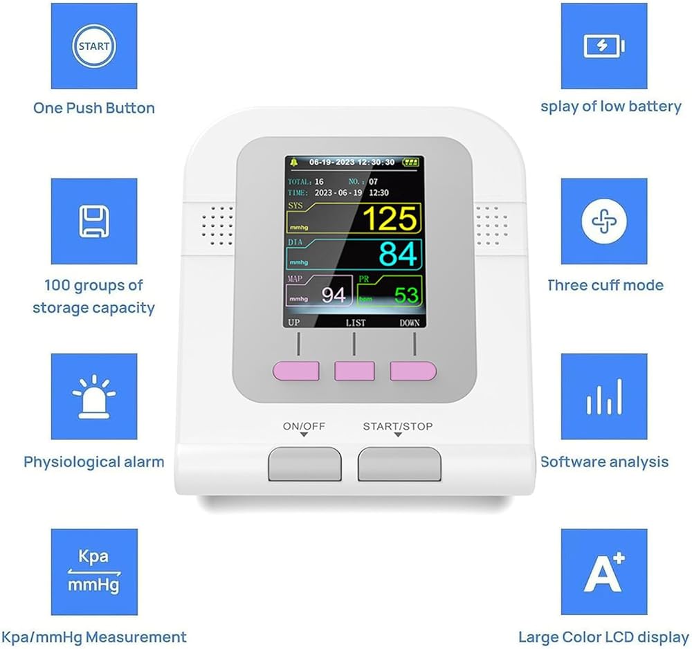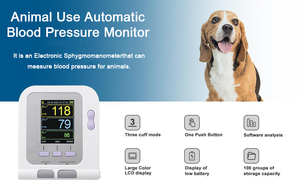 • 【وضع ثلاثة أساور】حزام كم صغير: محيط الطرف 25 سم، يمكن للمستخدم اختيار الكفة المقابلة لأنواع الجسم المختلفة من الحيوانات. تتميز المعدات بقياس تلقائي بالكامل، وشاشة LCD ملونة عالية الوضوح ورؤية قوية.