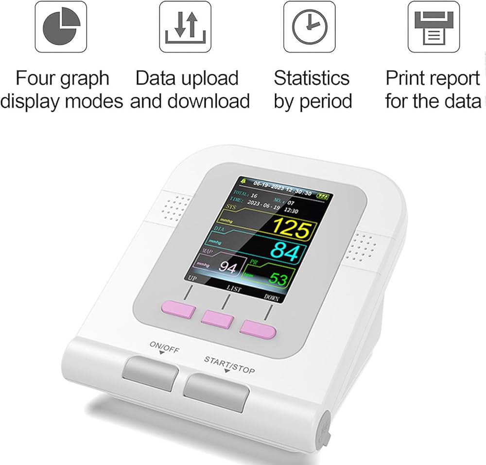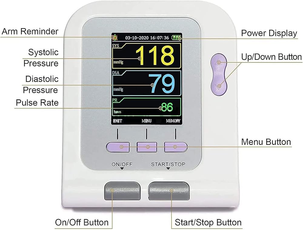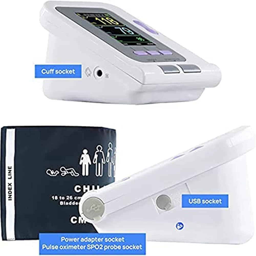 • 【تشغيل بمفتاح واحد】قياس ضغط الدم التلقائي، يعتمد طريقة قياس الانكماش متعددة الخطوات مع إمكانية تكرار جيدة. عند حدوث خطأ في القياس، سيطالب الجهاز برسالة خطأ. ملحوظة: كابل USB مخصص لتحميل البيانات وليس للشحن!!!