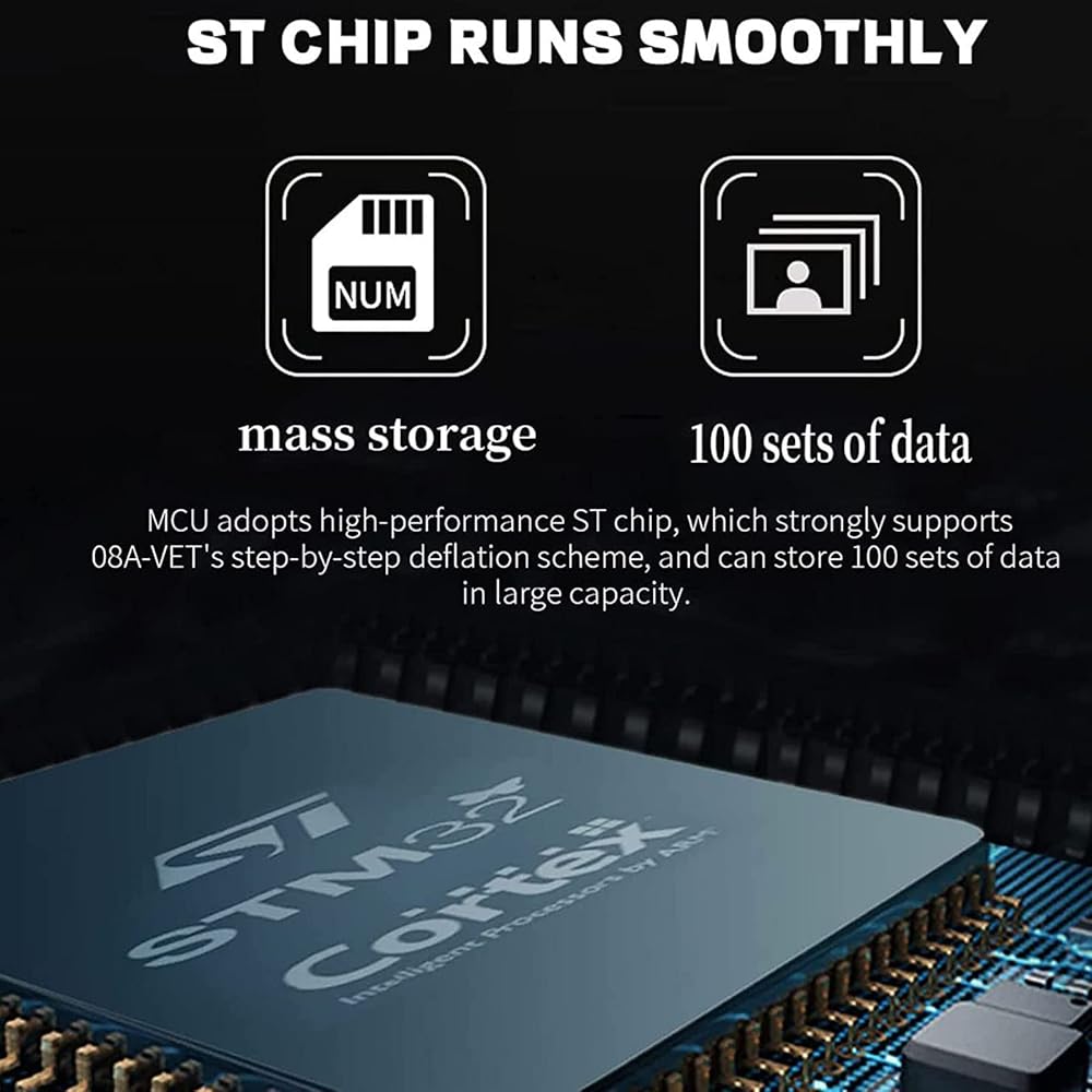 • 【رقاقة ST عالية الأداء】تستخدم وحدة MCU شريحة ST عالية الأداء، والتي تدعم بقوة حل انحراف النوع المتدرج 08A-VET، وتخزن 100 مجموعة من البيانات بسعة كبيرة، والتي يمكن مراجعة البيانات المقاسة.