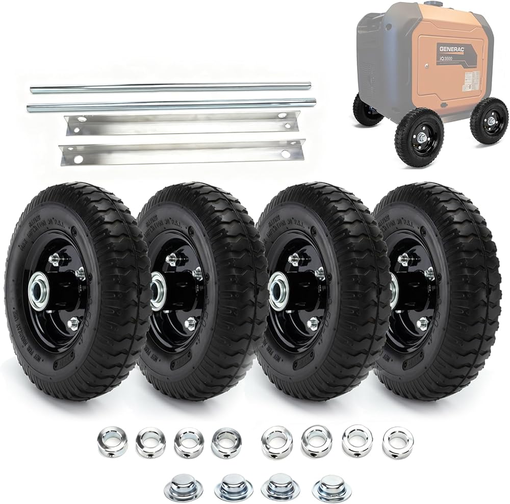 مجموعة عجلات جميع التضاريس مناسبة لمولد Generac iQ3500، إطارات هوائية مقاومة للثقب - إطارات صلبة غير مسطحة أبدًا (4 عبوات)