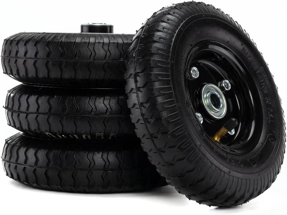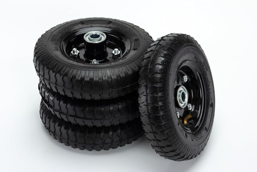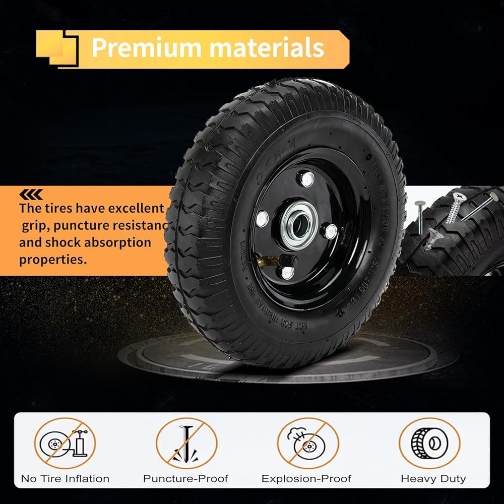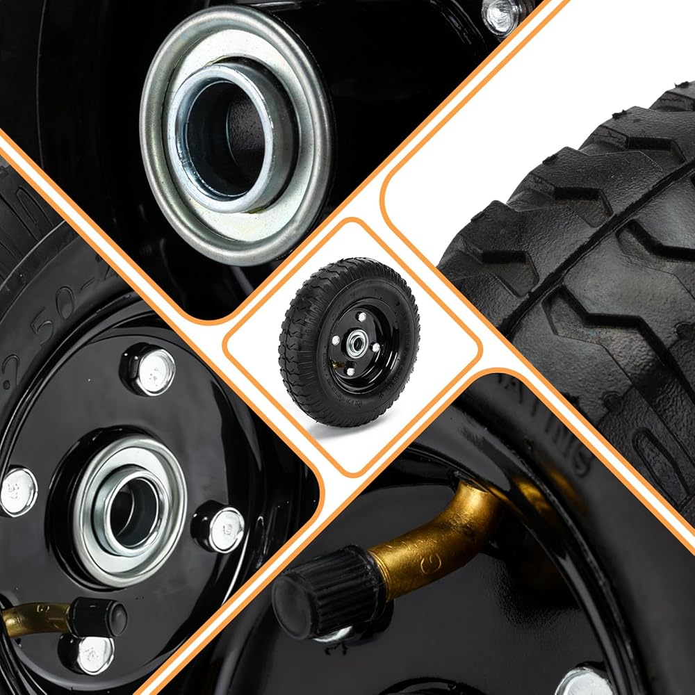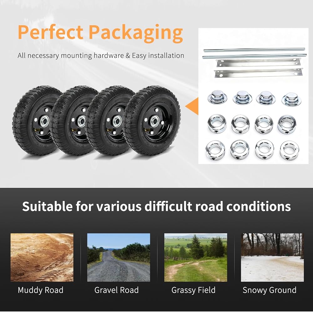 • [Perfect Packaging]: Includes:8" Puncture Resistant Pneumatic Tires, Black Steel Wheels, Heavy Duty 5/8" Cold-Rolled Steel Axles, Structural 1/8" Aluminum Mounting Rails, All necessary mounting hardware.