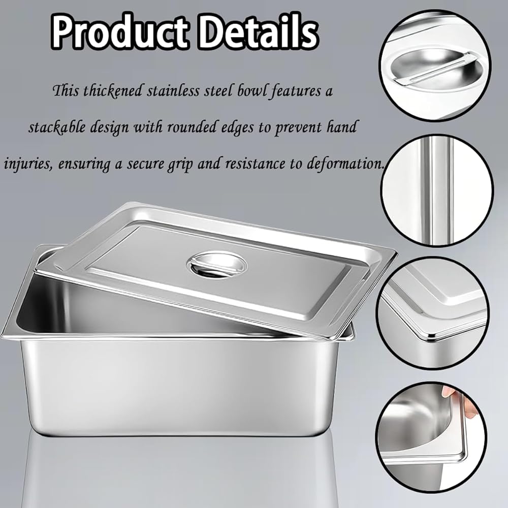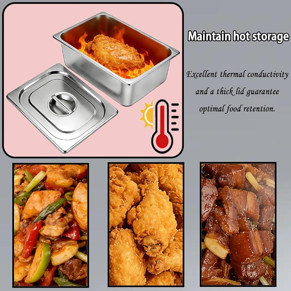 • Premium Material and Durability: Crafted from rust-resistant stainless steel, these steam table pans feature a non stick, smooth surface for effortless cleaning. Excellent heat conductivity and thick lids ensure optimal food warmth while blocking dust.