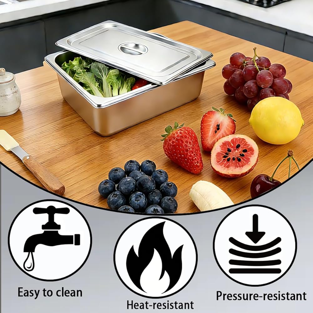 • Stackable and User Friendly Design: Engineered for practicality, our stainless steel hotel pans boast a stackable build to save storage space and simplify transport. Round edges prevent hand scratches, provide secure grips, and resist deformation.