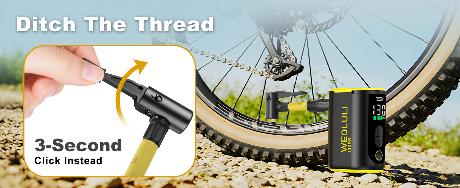 This portable bicycle pump features an upgraded snap-on design that redefines convenience. Unlike traditional mini pumps that require tedious screwing, its advanced connector simply clips onto the valve—just attach and start pumping instantly, with no twisting or readjusting needed. The heat-resistant silicone sleeve ensures a safe, comfortable grip while reducing heat generation by 20% compared to other pumps, allowing for extended use without discomfort. Powered by a robust 2000mAh battery, this compact electric pump delivers exceptional battery life—capable of inflating five tires from 0 to 100psi on a single charge. That means even on the third day of your journey, if you encounter an unexpected puncture, it has enough power to handle both wheels and keep your adventure going. With two built-in valve adapters, it seamlessly switches between Schrader and Presta valves, making it compatible with a wide range of bikes: city bikes, MTBs, fat tire bikes, road bikes, gravel bikes, folding bikes, e-bikes, and more. Whether you're on a quick commute, a mountain trail, or a cross-country tour, this pump travels effortlessly with you. It's small enough to slip into a jersey pocket, yet powerful enough to handle two flat tires—because the best gear is the gear you actually carry.