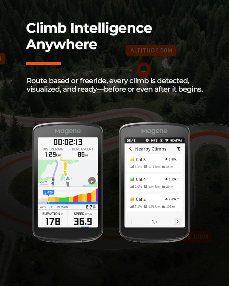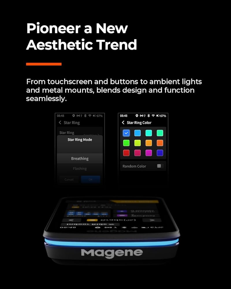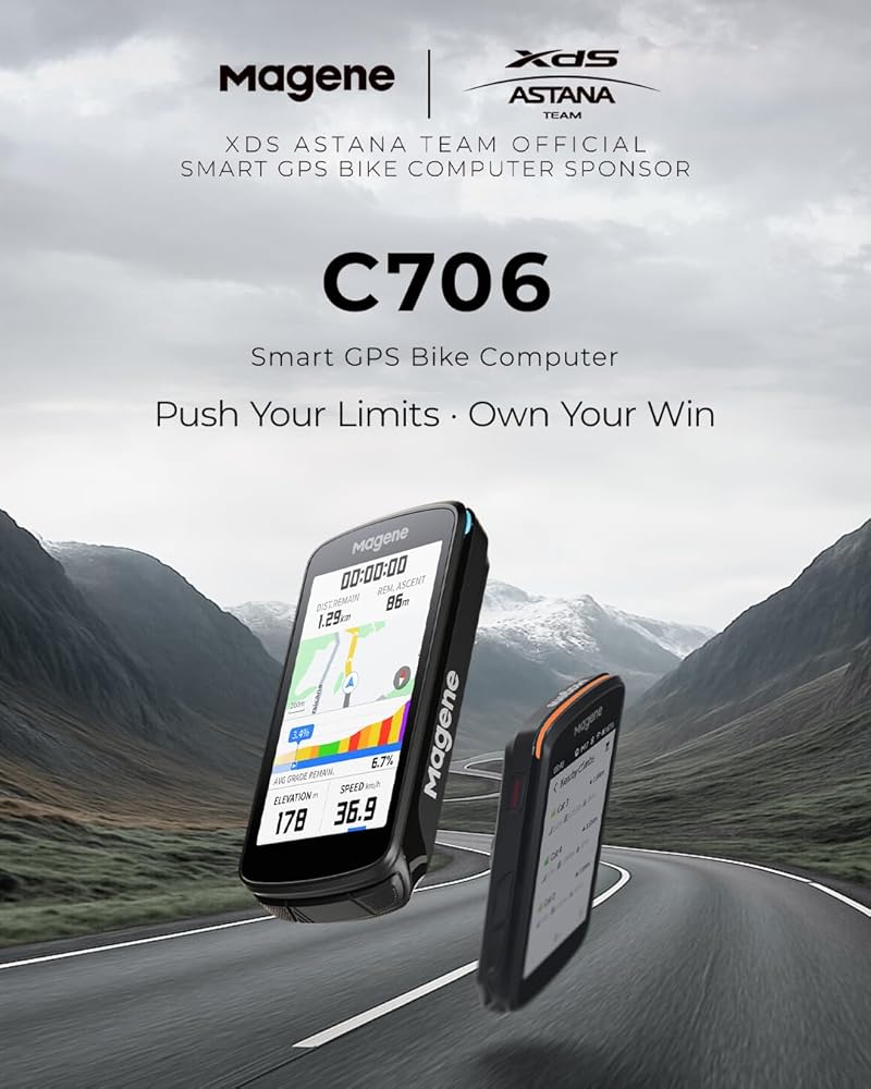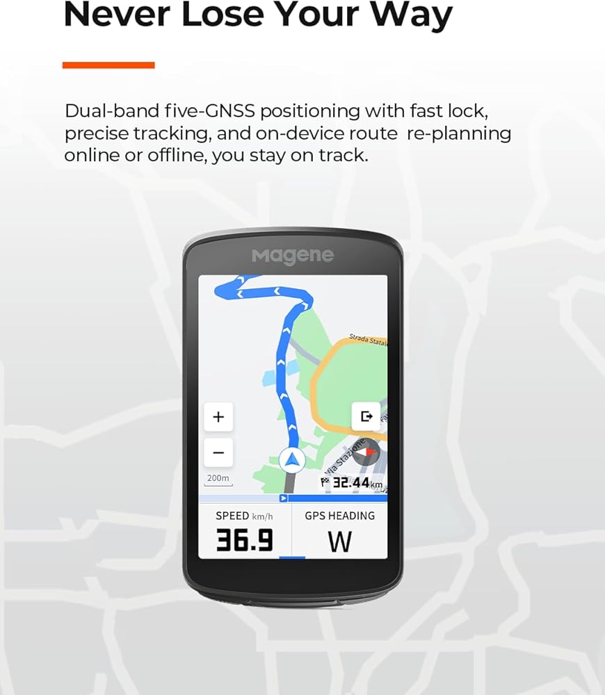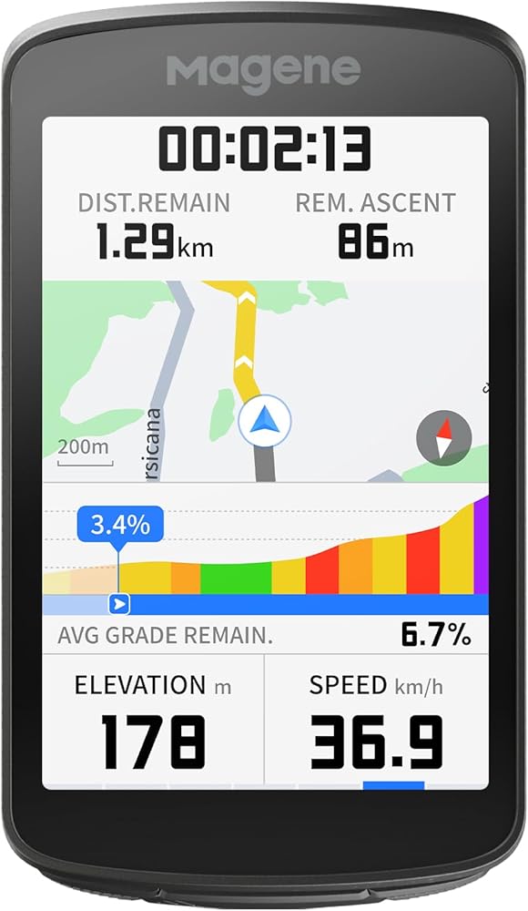 كمبيوتر الدراجة الذكي Magene C706 بنظام تحديد المواقع العالمي - شاشة لمس ملونة مقاس 3.3 بوصة مع نظام ملاحة دون الاتصال بالإنترنت، وتوجيه صوتي، وFreeride ClimbPro، وقطاعات حية، وكمبيوتر لركوب الدراجات GNSS ثنائي النطاق