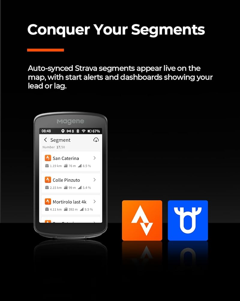 Strava Live Segments - عرض قائمة وخرائط في الوقت الفعلي، ومزامنة Wi-Fi تلقائيًا للقطاعات المحفوظة، ومعارك PK مباشرة ولوحة تحكم مخصصة للمنافسة الفورية