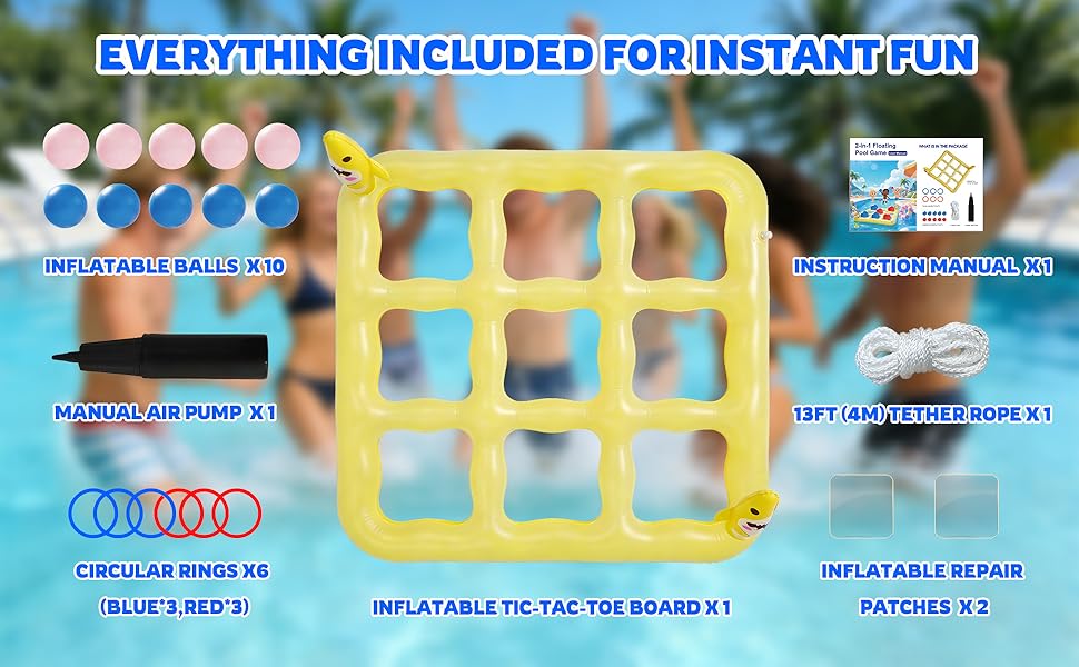 ☀️ ألعاب حمام السباحة الممتعة 2 في 1 للأطفال من سن 8 إلى 12 عامًا: تتحدى هذه اللعبة عقول اللاعبين وقدراتهم البدنية، مما يضمن متعة اللاعبين من جميع الأعمار. تعمل لعبة الرمي الدائري تيك تاك تو على تعزيز التفاعل بين اللاعبين من مختلف الأعمار وهي إضافة رائعة لأي لعبة بلياردو ومجموعة ألعاب.
