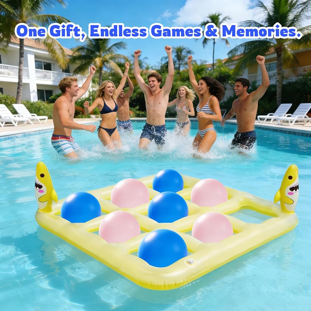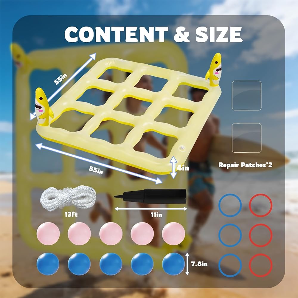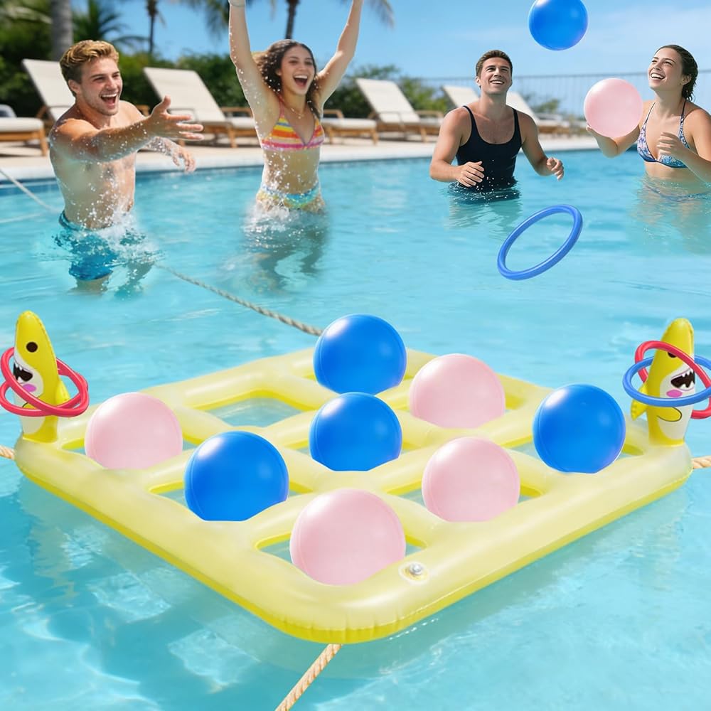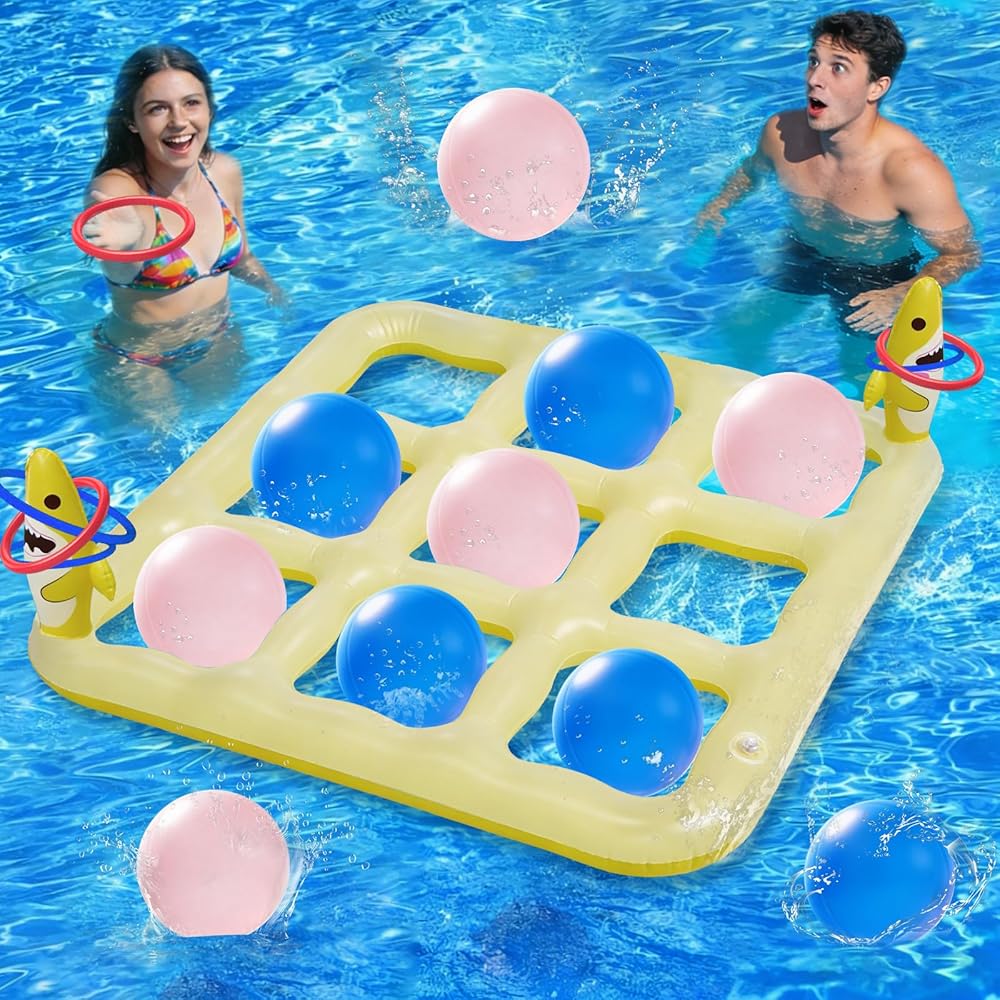 لعبة تيك تاك تو العملاقة 2 في 1 وألعاب الرمي ذات الحلقات المتقاطعة - مجموعة ألعاب ألعاب حمام السباحة، ألعاب ساحة خارجية قابلة للنفخ للأطفال والبالغين والعائلة، مع 10 كرات للبالغين والمراهقين والأطفال من 2 إلى 10 لاعبين