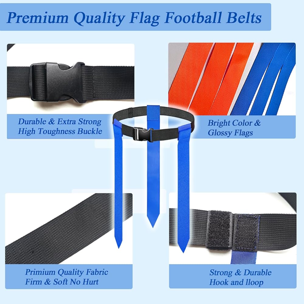 Durable Flag football flags: Flags are made of 600D Oxford fabric,ensuring durability, waterproofing, superior texture, lightweight portability, and tear-resistant performance that surpasses all expectations. Don't worry about the flag tearing or ripping during playing the game. The dense weaving technology on the belts has a longer life span, and can withstand years of rough and intense games.
