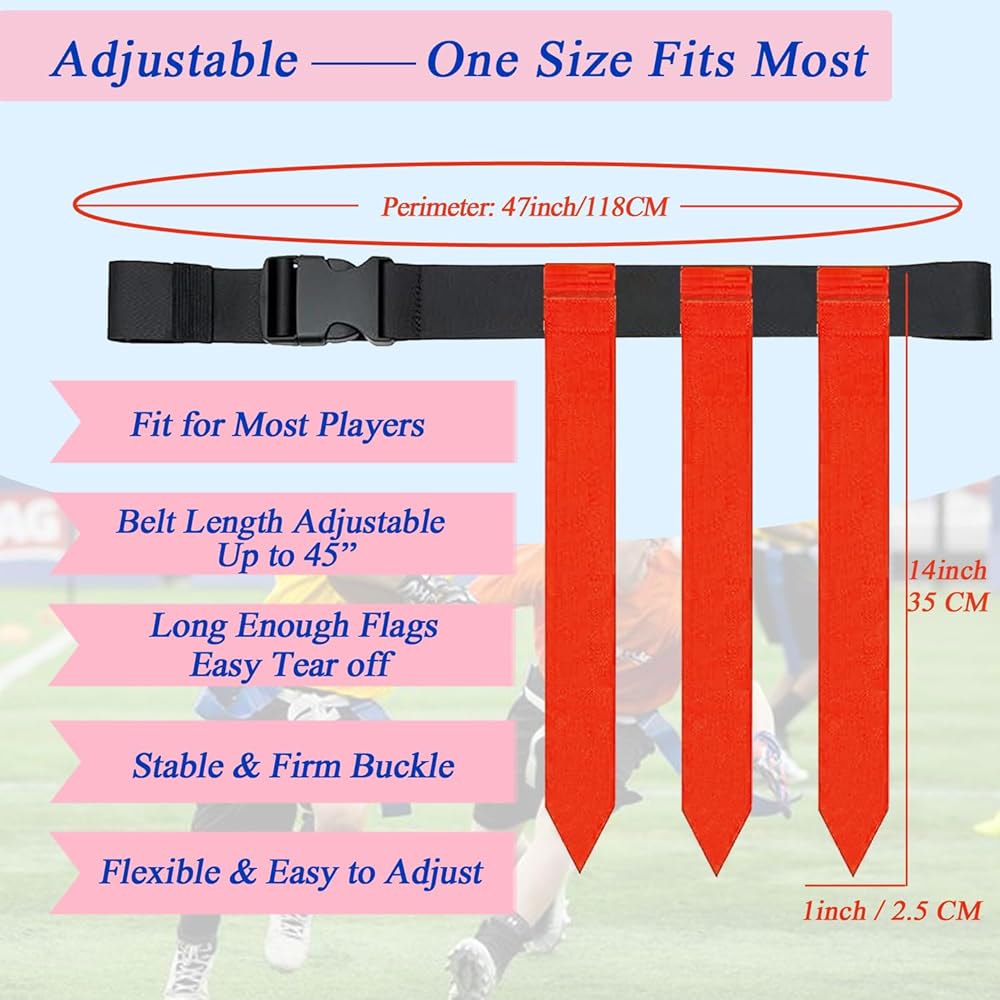 Adjustable and Wider Flag Football Belt: Unixing adjustable flag football belts feature 45”long, suitable for all players , and a comfortable 1.5" width, you can wear them snugly around your waist without feeling restricted.