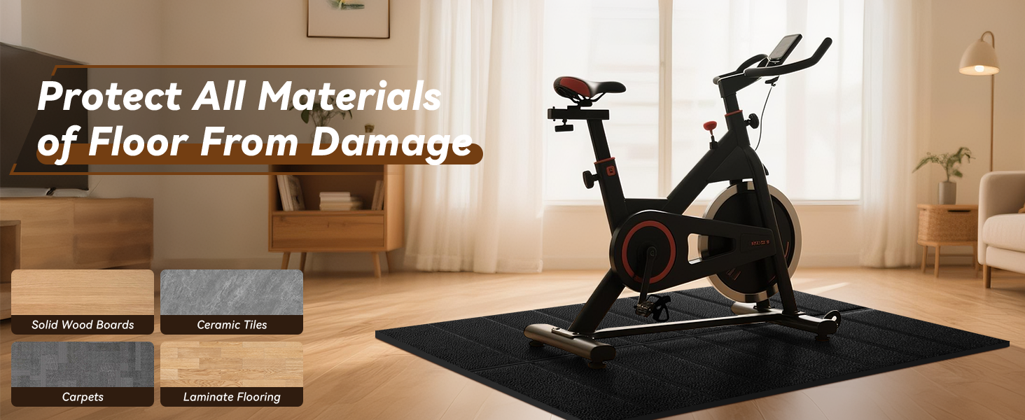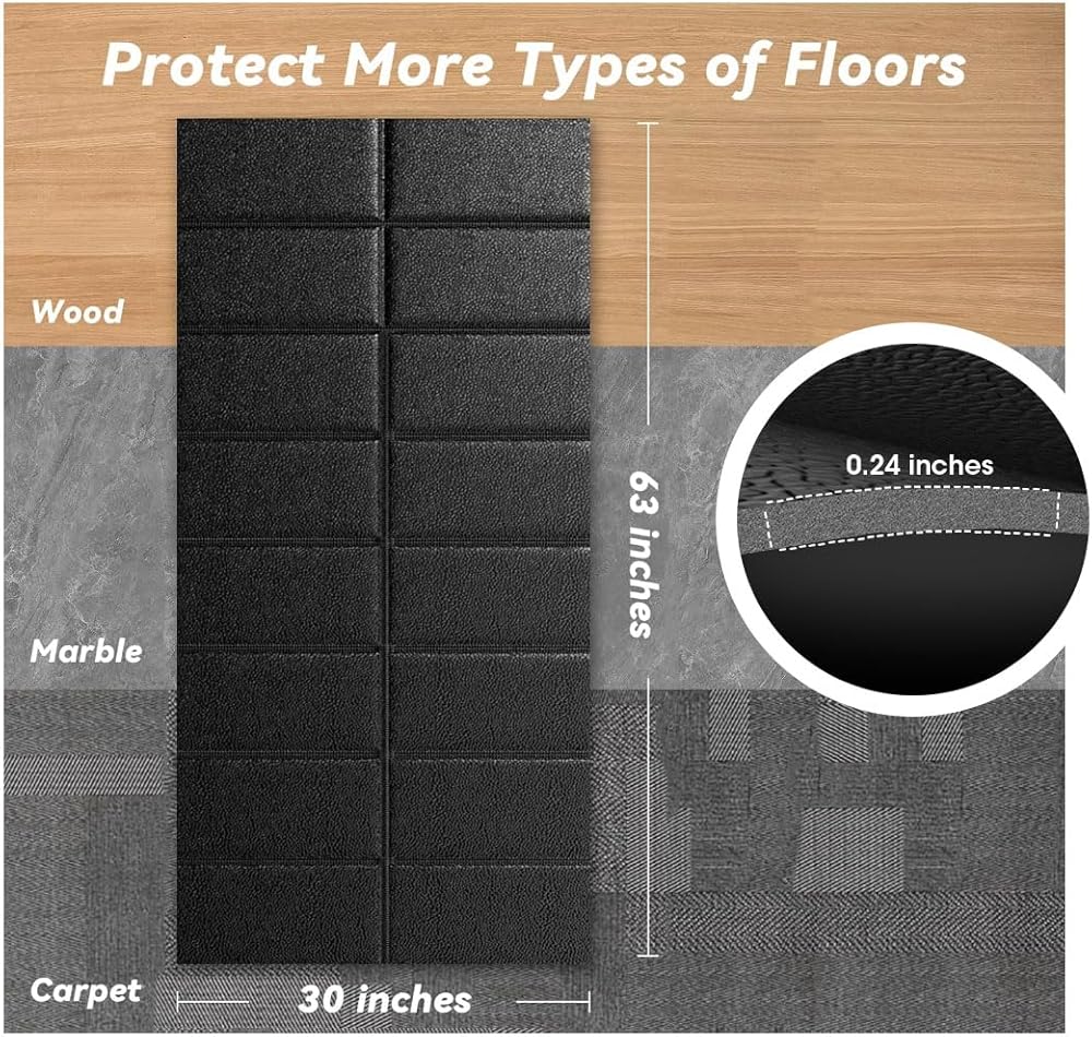 مادة PVC: مصنوعة من مادة PVC عالية الكثافة مع متانة وتبطين لا مثيل لهما لتحمل معدات اللياقة البدنية الثقيلة، وتحمي الأرضيات والسجاد بالكامل