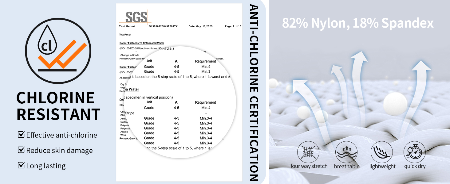 Chlorine resistant and colorfast,ideal for swimming,surfing,training,racing,competition,diving,or water aerobics