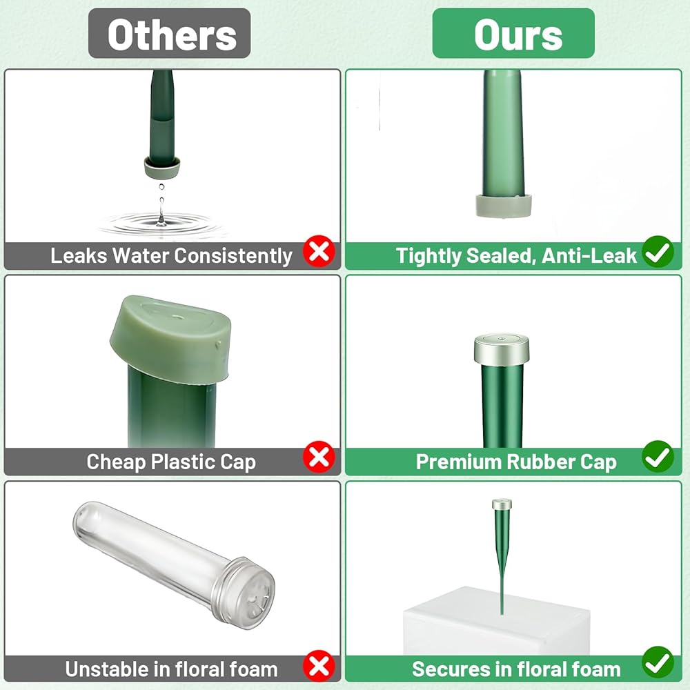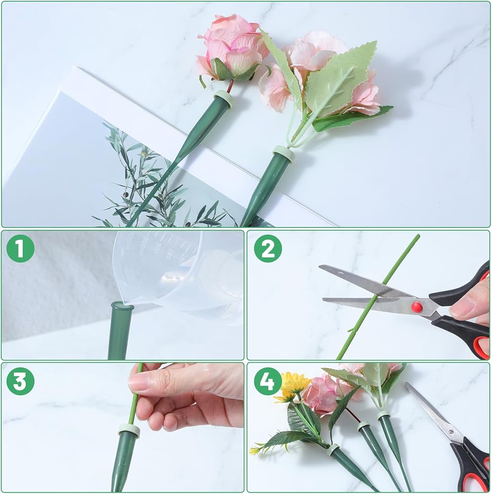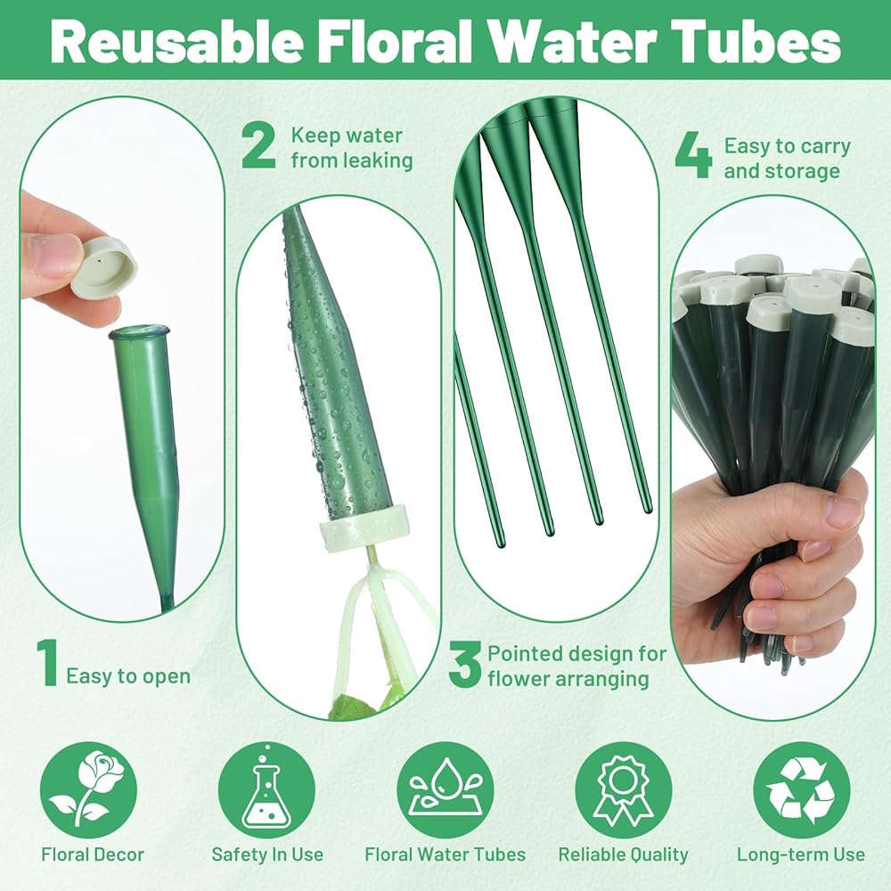 Easy to Use: Using the green floral tubes is very simple. Just fill the floral water tubes with water, insert them into the flower stems, and keep them moist to prolong the life of the flowers. Whether you're a beginner or a professional, you can easily operate this flower tubes