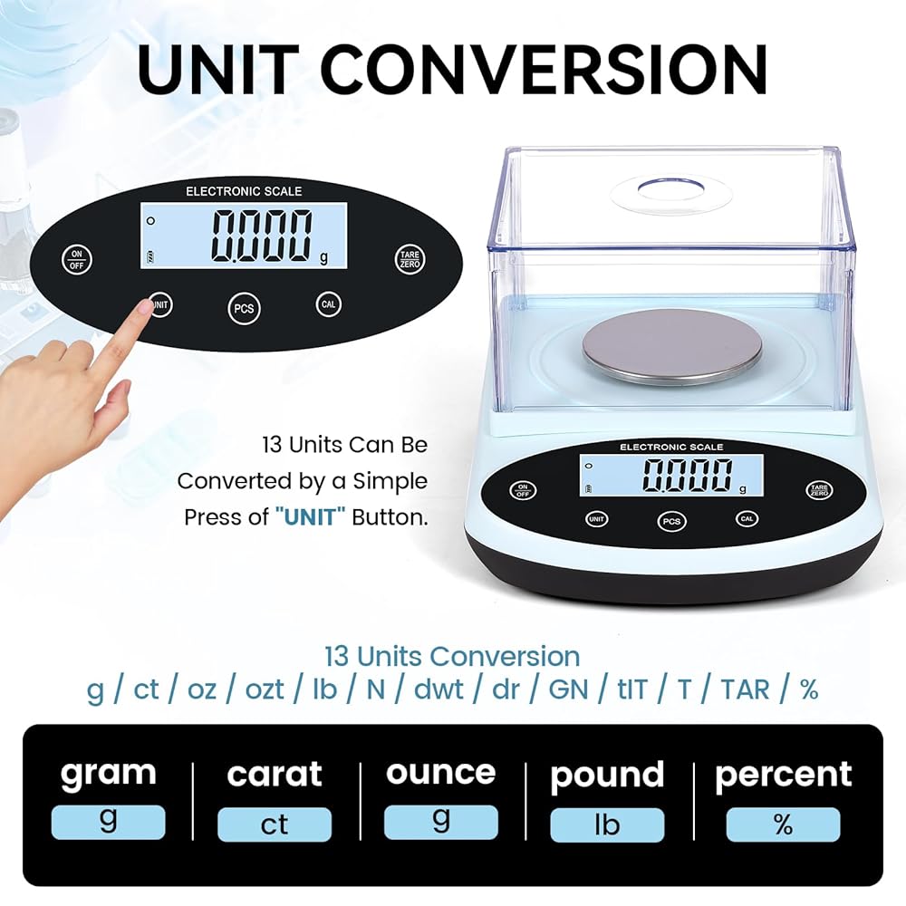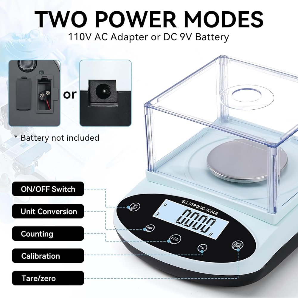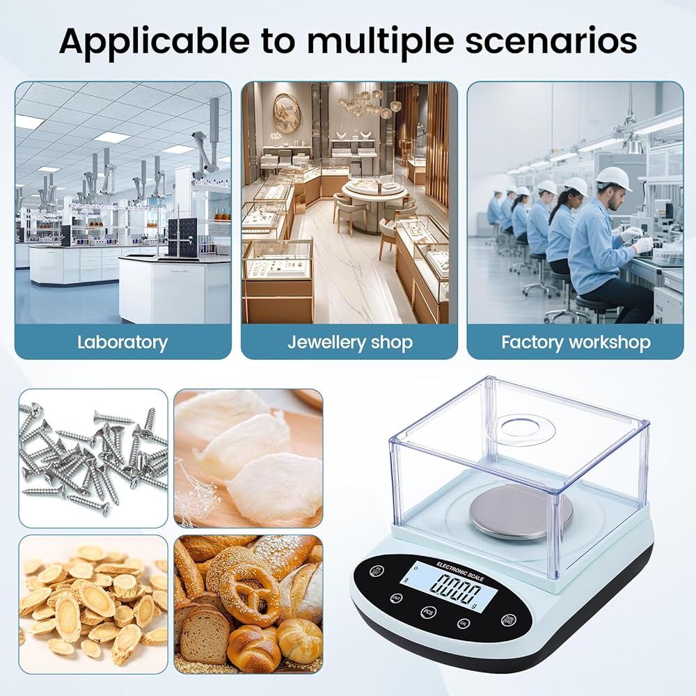 مجموعة واسعة من التطبيقات: تم تصميم ميزان المختبر الرقمي هذا لتعدد الاستخدامات، وهو مناسب لإعدادات ومهام متنوعة بما في ذلك التحليل الكيميائي، والبحث والتطوير الدوائي، واختبار علوم المواد، ووزن الطعام، والأبحاث المعملية، والاستخدام التعليمي في المدارس، وتقييم المجوهرات، بالإضافة إلى التطبيقات المنزلية اليومية.