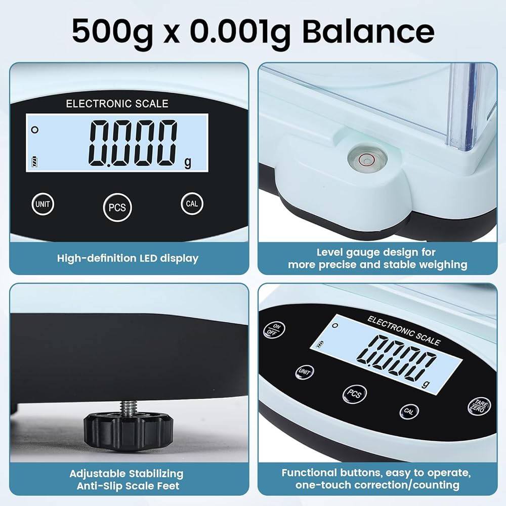 مقياس جرام عالي الدقة: يتميز ميزان المختبر التحليلي هذا بدقة مذهلة تبلغ 0.001 جرام، وهو مزود بمستشعر قياس الضغط عالي الدقة الذي يضمن دقة متسقة تصل إلى 0.001 جرام. مع قدرة وزن قصوى تصل إلى 500 جرام، يأتي هذا الميزان كاملاً بوزن معايرة 200 جرام لمعايرة موثوقة. للحصول على الدقة المثالية، يرجى معايرة الميزان قبل الاستخدام. فهو يوفر إمكانية قراءة تبلغ 0.001 جم مع الحد الأقصى للخطأ المسموح به وهو ≥0.003 جم، مما يلبي معايير القياس المعملية الصارمة.