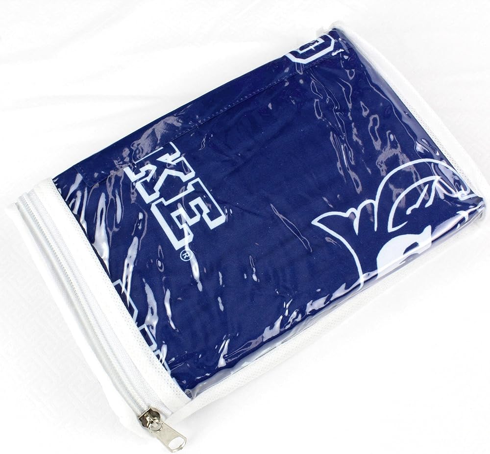 This College Covers brand apron, measures 26 inches wide by 35 inches long. The adjustable neck strap allows for either a tall or short person to wear with ease. It also includes a nice sized 9 inch front pocket you can hold those extras you need while grilling or cooking. These bright and bold colored aprons are made of 100% polyester for a soft yet sturdy feel that will last many washings. These aprons make a great gift to that special someone who loves to grill or tailgate and shares the same love for their favorite team. We recommend to wash with like colors in cold water and tumble dry on a low heat to make these last. Licensed by Everything Comfy.