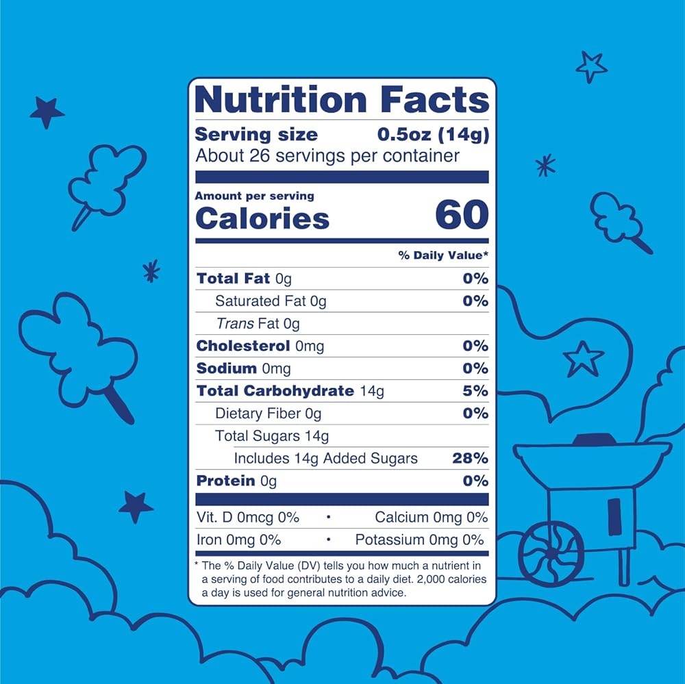 تصنع 25-30 حصة من حلوى القطن لكل زجاجة بوزن 13.2 أونصة - كل زجاجة من سكر حلوى القطن من وامب تنتج 25-30 مخروطًا من حلوى القطن بالحجم الكامل. تحافظ العبوة القابلة للإغلاق على النضارة والملمس الناعم بين الاستخدامات، لذا فإن كل دورة تنتج نفس النتائج الرقيقة والمتسقة من أول جرعة إلى آخر جرعة.