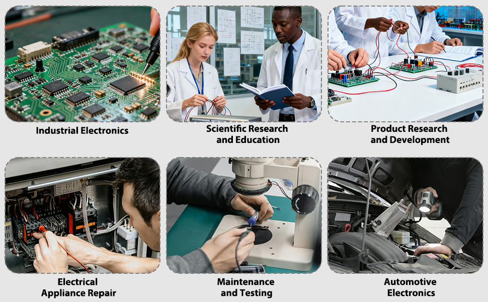 السيناريوهات القابلة للتطبيق: تشخيص وإصلاح الأجهزة المنزلية والسيارات والمعدات الصوتية وما إلى ذلك؛ التقاط وتحليل الإشارات الخاصة المتولدة في التجارب المعملية؛ التحليل الدقيق للإشارات المتولدة أثناء تصميم واختبار وتحسين لوحات الدوائر والرقائق والأنظمة من قبل المهندسين؛ تدريس الدورات المتعلقة بالإلكترونيات والهندسة الكهربائية في مختبرات الجامعة أو مؤسسات التدريب