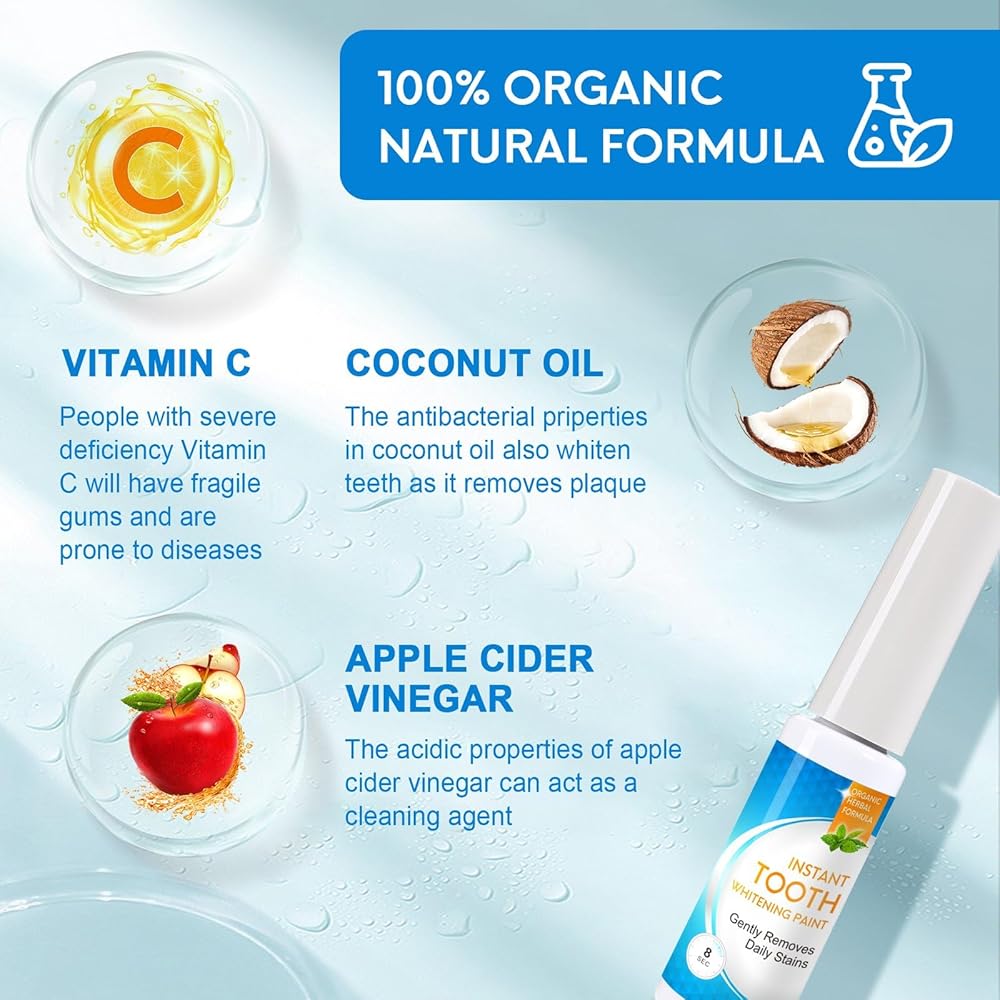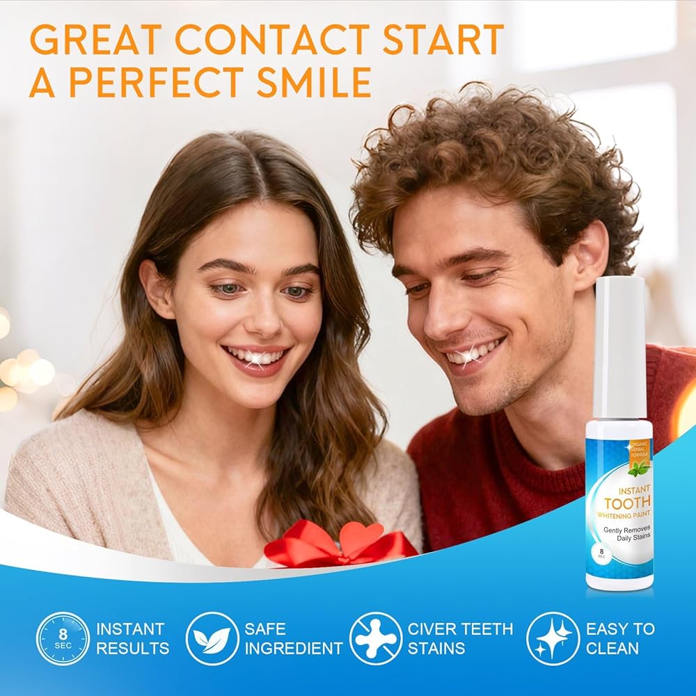 طلاء تبييض الأسنان الفوري - تركيبة محمولة بالفرشاة للحصول على ابتسامة أكثر إشراقًا ولطيفة وسهلة الاستخدام.