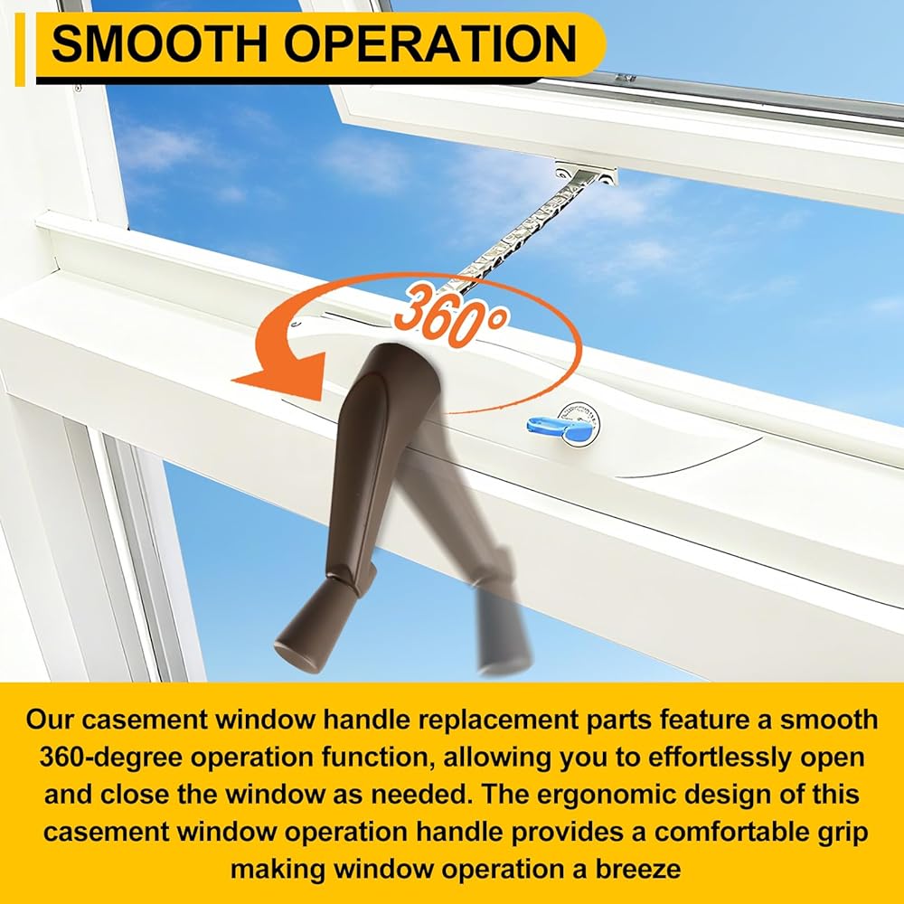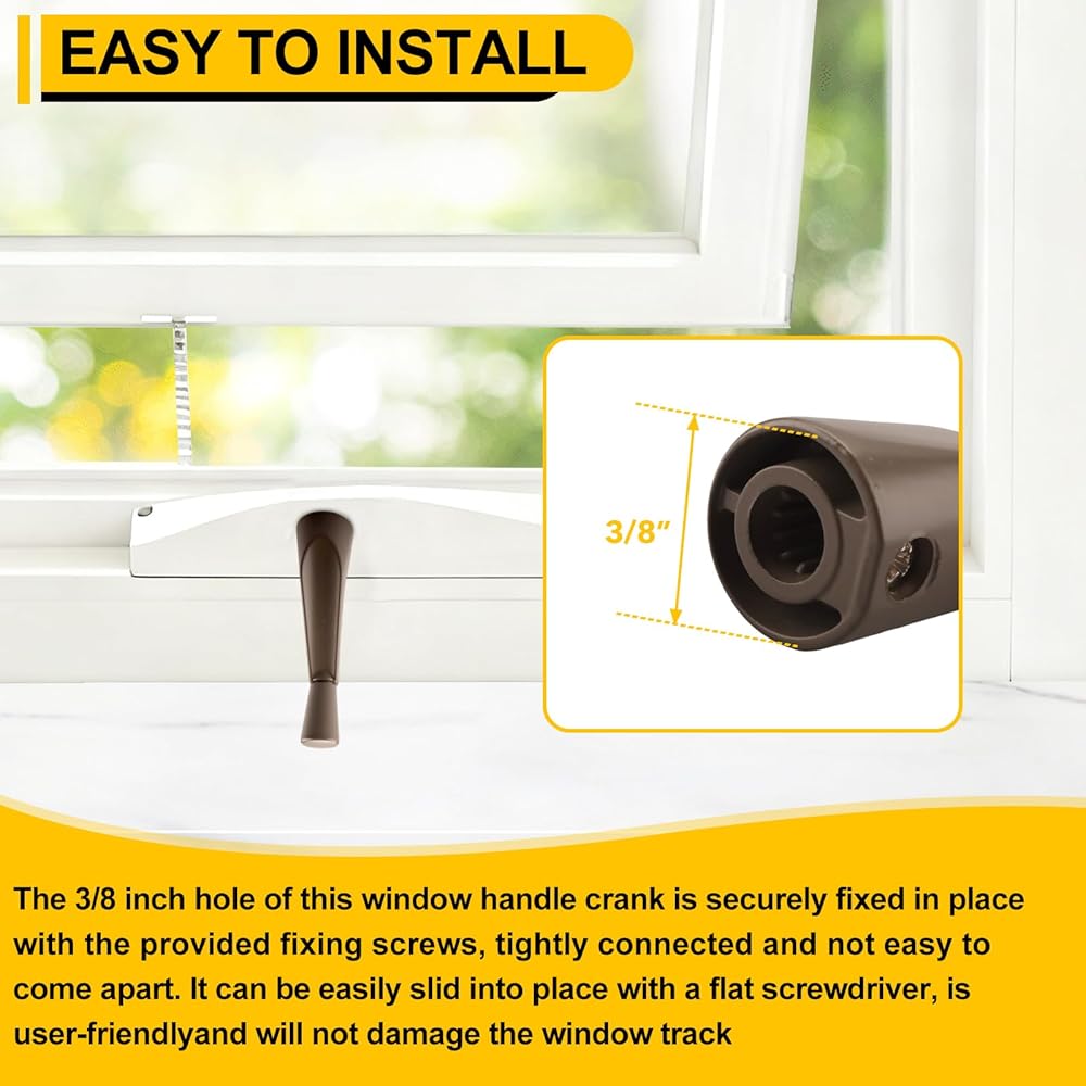 [تشغيل سلس] يتميز استبدال مقبض كرنك النافذة بفتحة عمود 3/8 بوصة وطول تمديد 3-1/8 بوصة. يعمل بسلاسة خلال 360 درجة، مما يسمح بفتح وإغلاق النافذة بسهولة وفقًا لاحتياجاتك