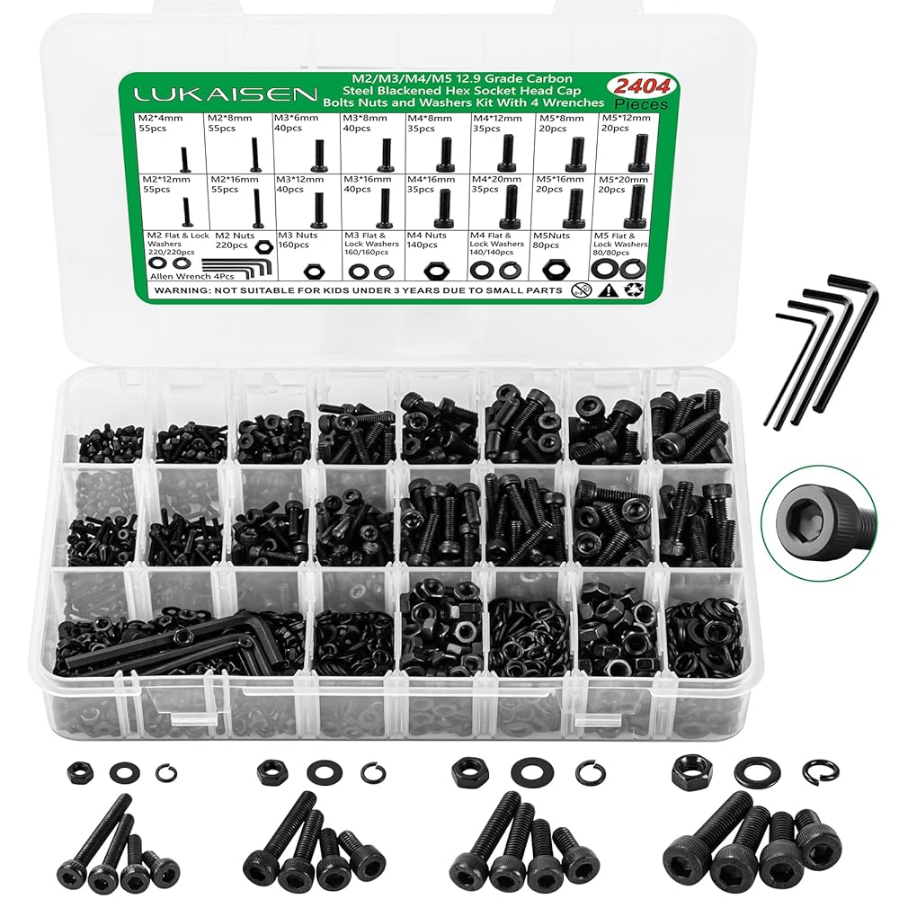 • 👨‍🔧【مجموعة مثالية】--- تشكيلة براغي وصواميل LuKaiSen تأتي في مجموعة كاملة من المواصفات، تتكون من 860 براغي وصواميل وغسالات في خمسة أحجام: M2، M3، M4 وM5. يتوفر كل مقاس بأربعة أطوال مختلفة، 8 مم، و10 مم، و16 مم، و20 مم، وكل مقاس مطابق للصامولة والغسالة وغسالة القفل المقابلة. لذلك، تحتاج فقط إلى شراء مجموعة واحدة لتلبية احتياجاتك المختلفة في الحياة.