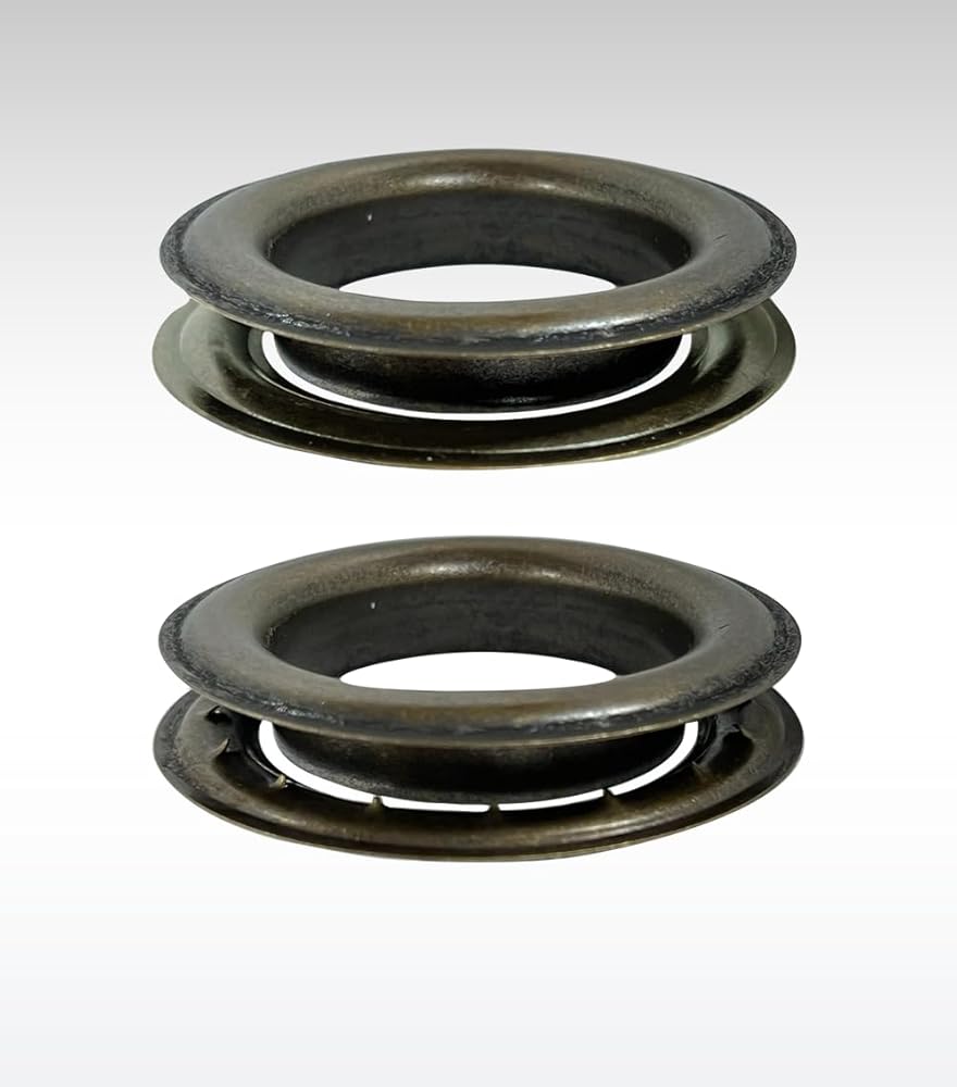 • HEAVY DUTY CURTAIN GROMMETS: Round brass curtain grommets with washers for drapery panels, blackout curtains, outdoor curtains, room dividers, and commercial curtain work.