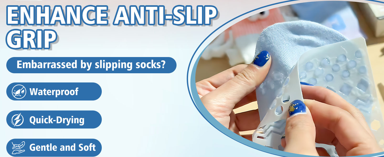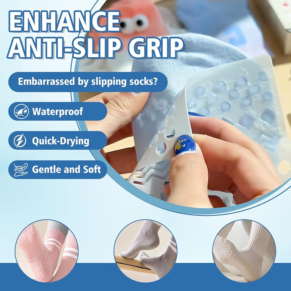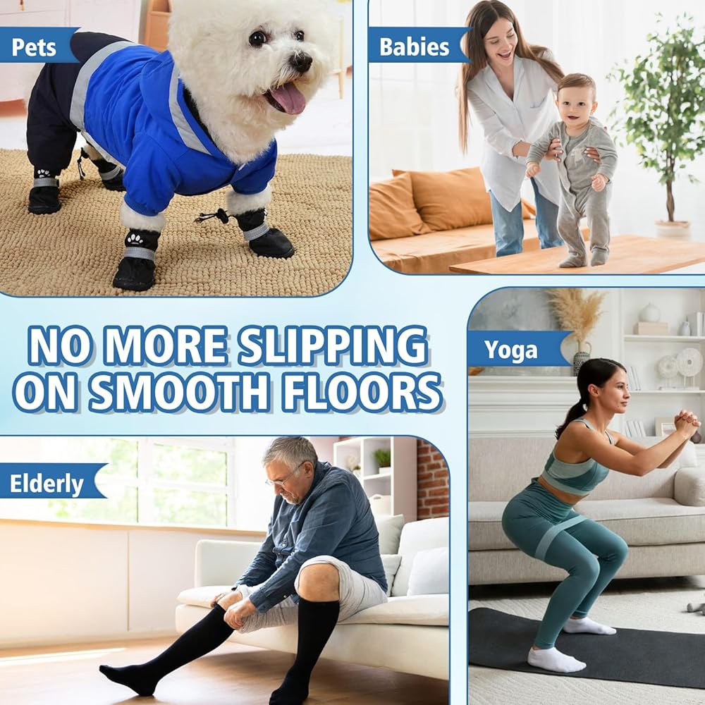 مضاد للانزلاق قوي ويدوم طويلاً: قل وداعًا للانزلاق والسقوط! تعمل تركيبة صمغ إيقاف الجوارب المتقدمة لدينا على زيادة الاحتكاك بين الأقمشة (مثل الجوارب وظهر السجاد) والأرضيات الناعمة بشكل كبير، مما يوفر قبضة موثوقة وطويلة الأمد. مثالية لضمان ثبات كبار السن والأطفال الصغار والحيوانات الأليفة وكل من يمشي على الأسطح الزلقة.