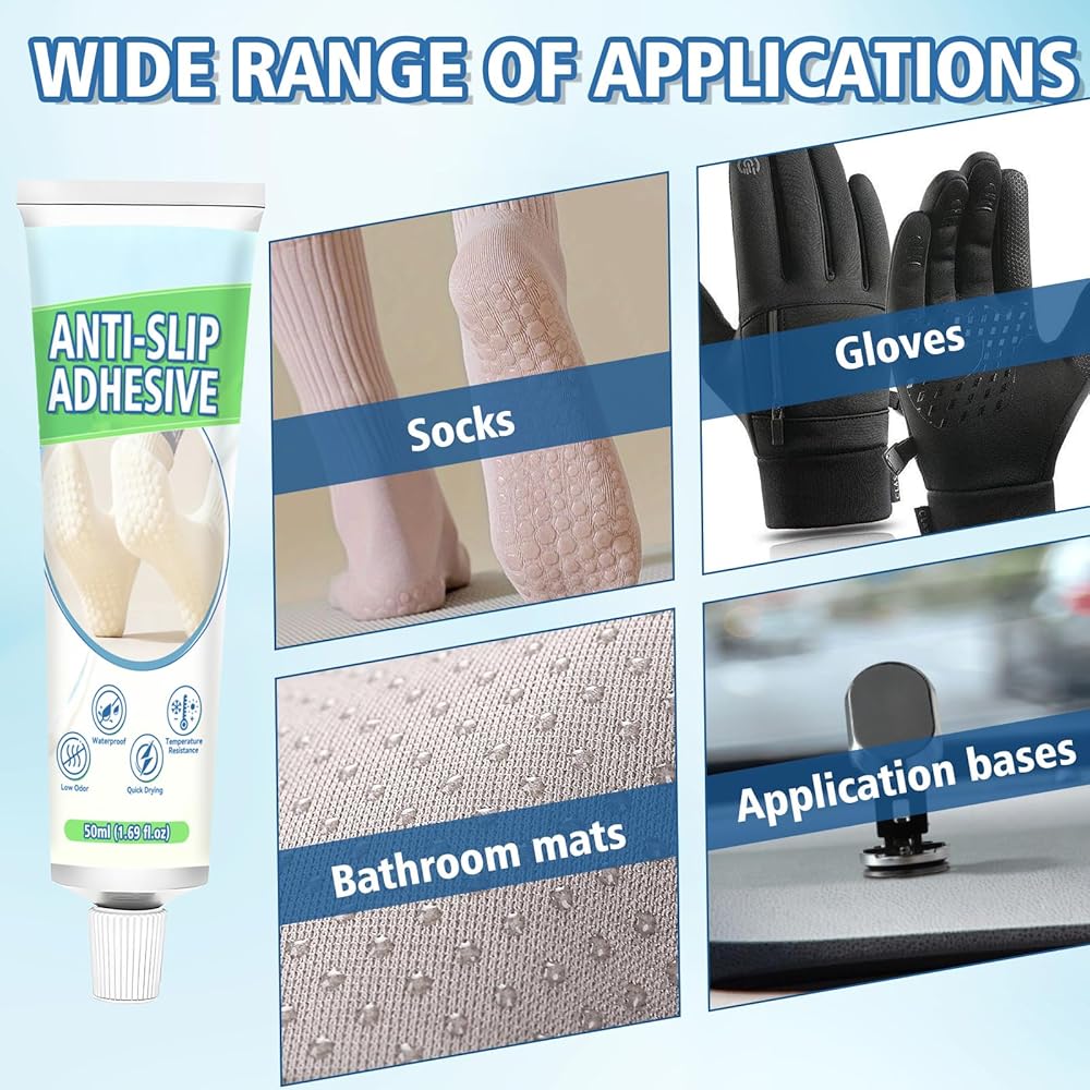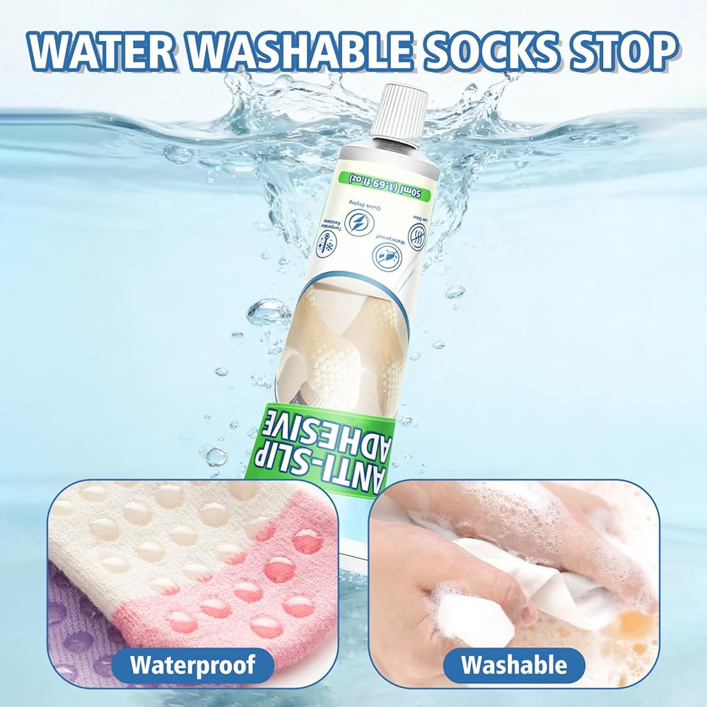 مقاوم للماء وسريع الجفاف: مصمم للحياة الحقيقية. يجف غراء الجورب بسرعة عند وضعه ويشكل رابطة مرنة مقاومة للماء تتحمل الغسيل. تظل الطبقة المضادة للانزلاق سليمة وفعالة حتى بعد عدة غسلات، مما يطيل عمر الجوارب والحصائر والأقمشة.