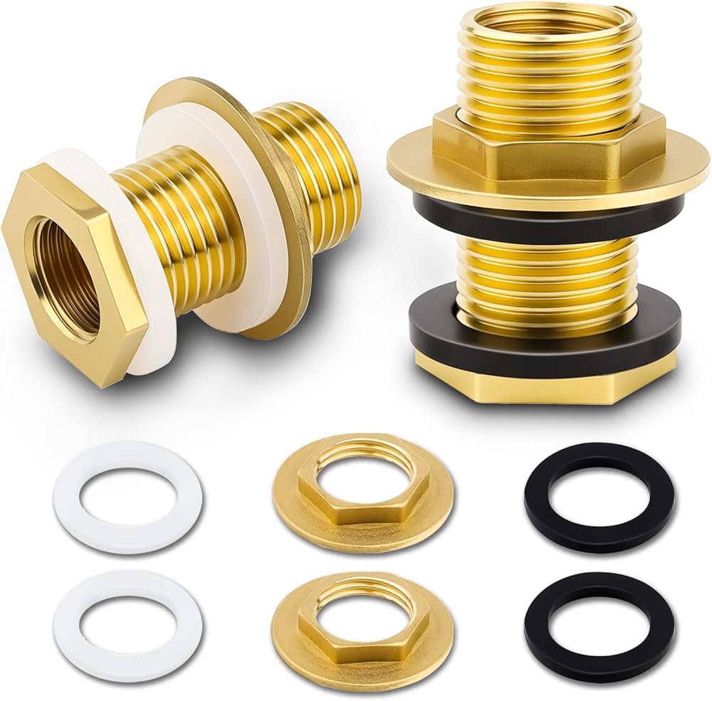 • Solid brass construction: Crafted from solid, corrosion-resistant brass, this 3/4 bulkhead fitting, Good high-temperature ductility, low magnetic permeability, smooth internal and external threads, ensuring long-term reliability and strength in various liquid and pressure applications