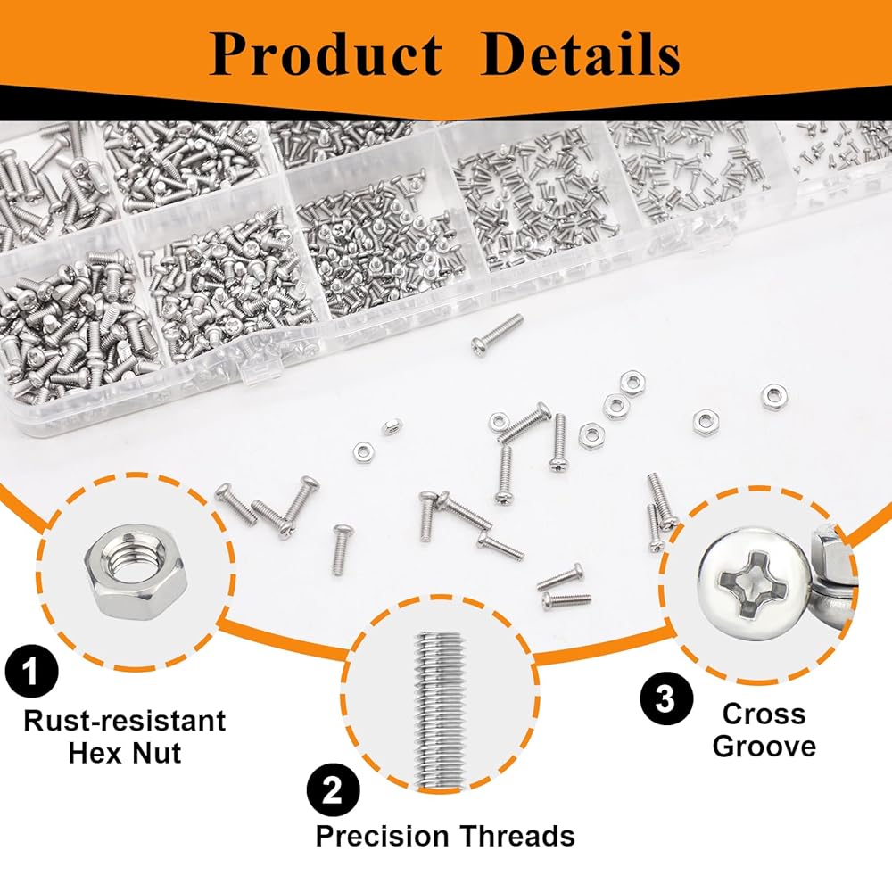 مجموعة عالية الجودة: تضمن هذه البراغي الصغيرة للإلكترونيات ملاءمة آمنة للمهام الدقيقة، مثل إصلاح مفصلات النظارات أو إجراء تعديلات ميكانيكية دقيقة. يتم تنظيم كل شيء بدقة في صندوق بلاستيكي صغير وشفاف لسهولة التخزين والنقل.