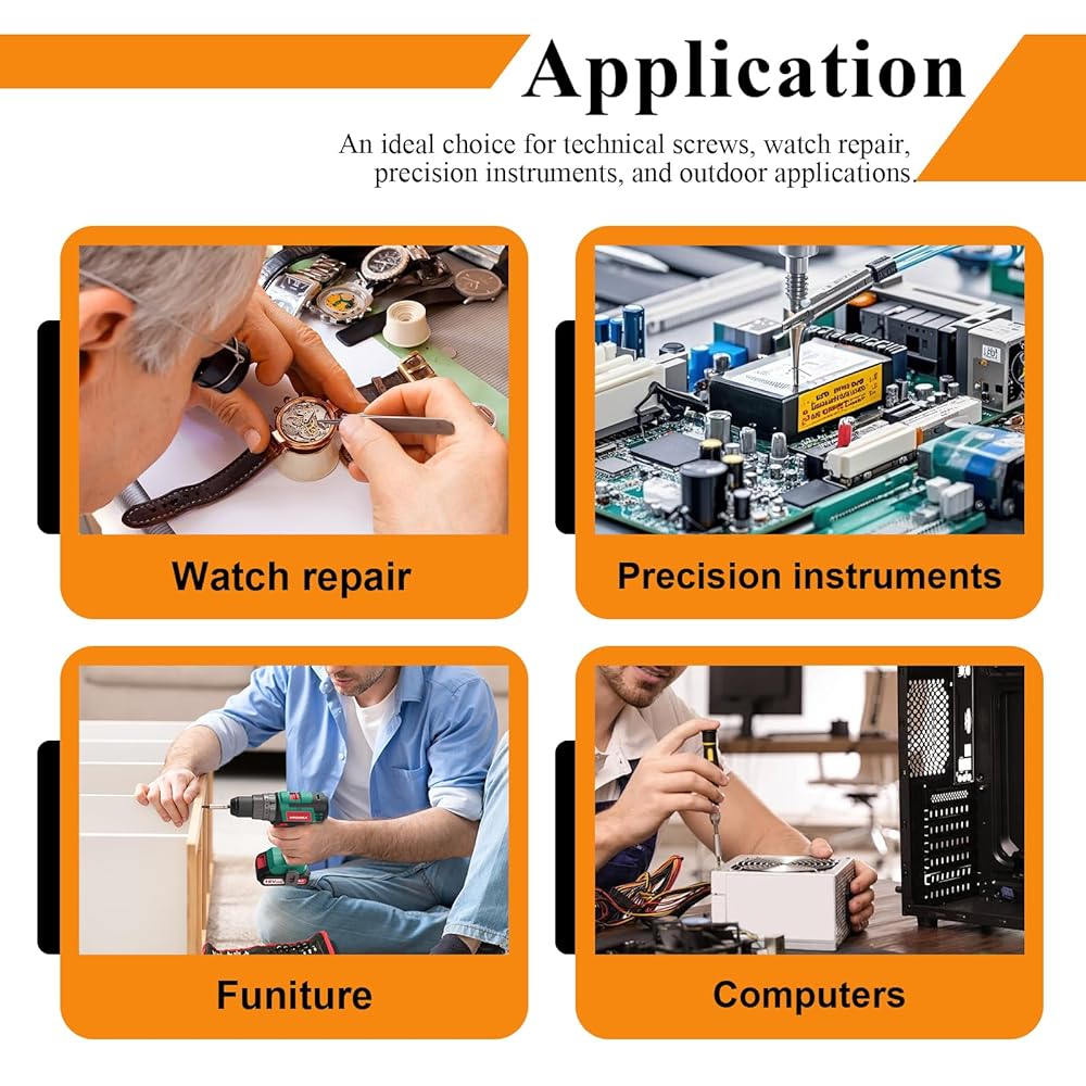 مجموعة واسعة من التطبيقات: خيار مثالي للبراغي التقنية وإصلاح الساعات والأدوات الدقيقة والتطبيقات الخارجية.