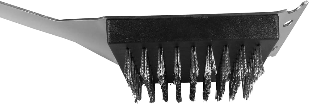 • Strong wire bristles and scraper at the end for difficult to remove debris