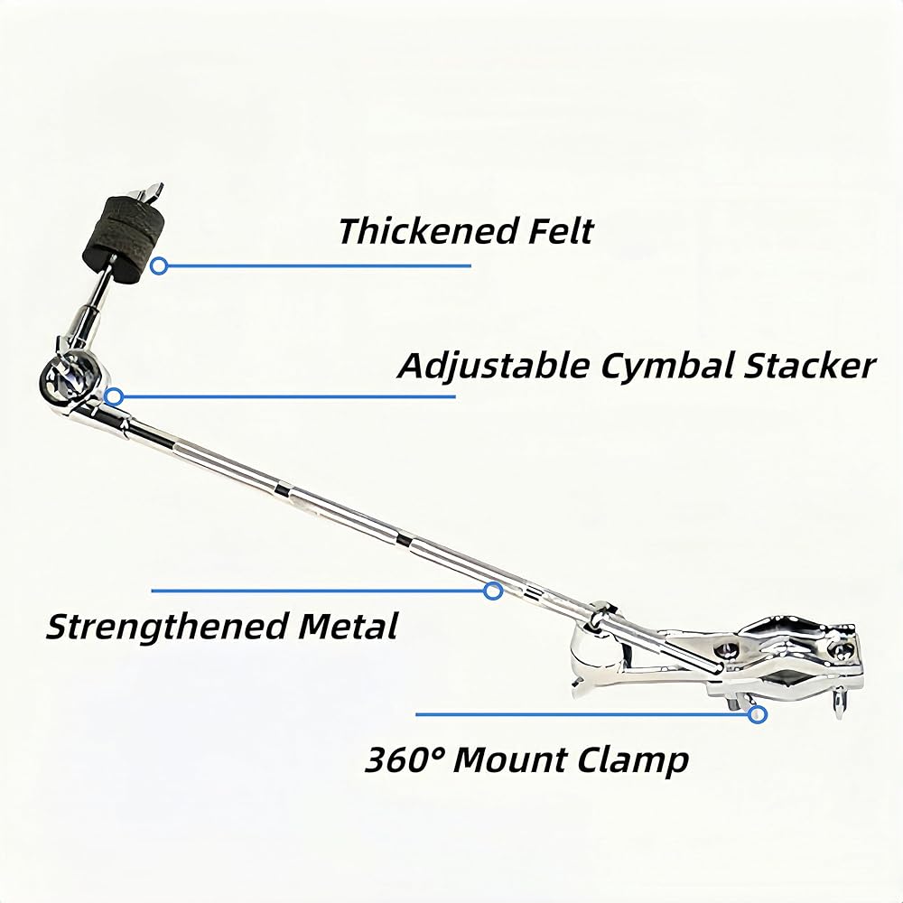 Drum Cymbal Boom Arm, Heavy Duty Cymbal Stand Grabber Arm, 360° Splash Crash Cymbal Mount Clamp with Extension Arm Thickened Felts Adjustable Cymbal Stacker